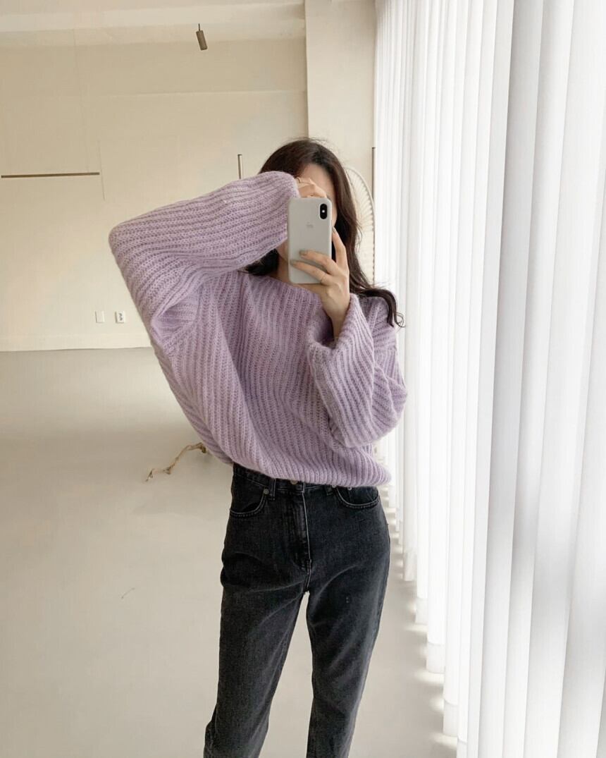 韓国ファッションウィンターラウンドネックセーター シャツ ショートルーズレディース ロング 大人ガーリー スウィート キュート カジュアル 冬物 Oネック 長袖 muzly97026652623 | Neatly