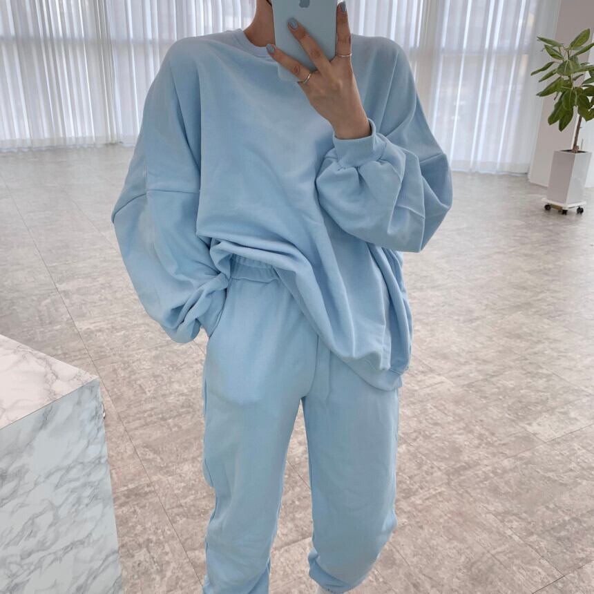 NEW秋物ルーズカジュアルソリッド カラーラウンドネックセーター ハイウェストウェスト薄手パンツ ロング オータム Oネック ソリッドカラー 長袖 ウエスト muzly62158585949 | Neatly