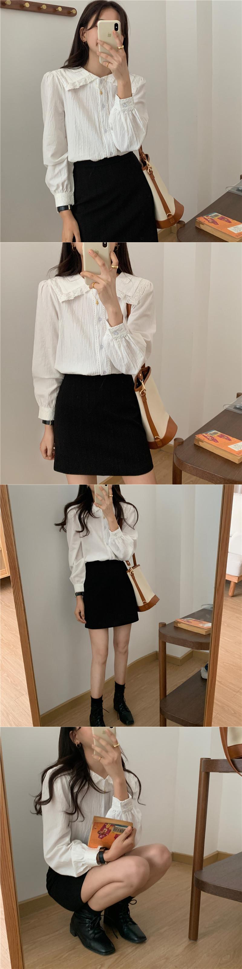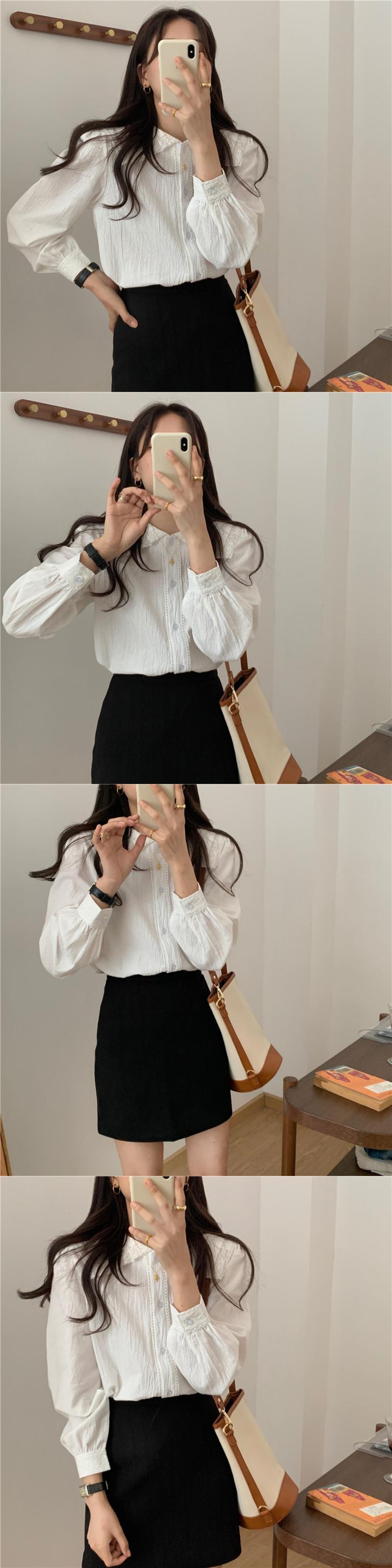 韓国ファッションスプリングスタイルスタンダードレースカラーシャツ トップス レディース ロング レトロ 大人ガーリー スウィート キュート カジュアル 春物 ステッチ 長袖 muzly42173136239 | Neatly