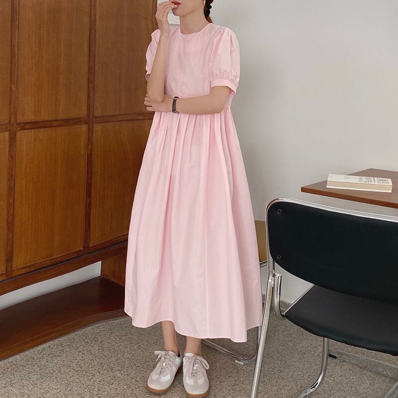 夏服スタンダードスリーブラウンドネックロングプリーツハイウェストウェストルーズミニ ワンピースワンピースレディース ランタンスリーブ レトロ 夏物 Oネック ウエスト muzly33306567117 | Neatly