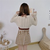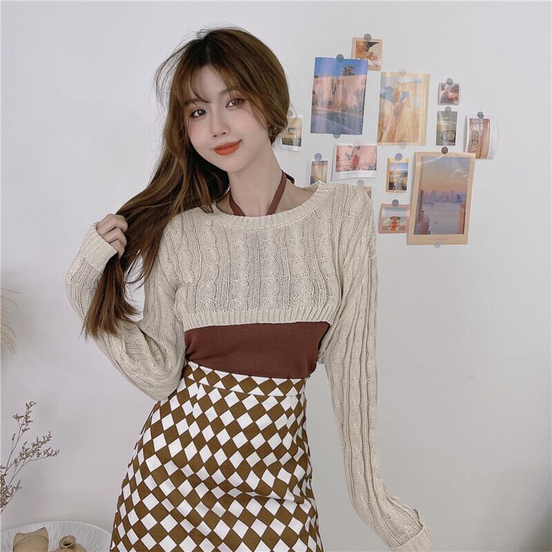 色:アプリコットブラウス,グレーブラウス,ホワイトサスペンダー,コーヒー色のスリング