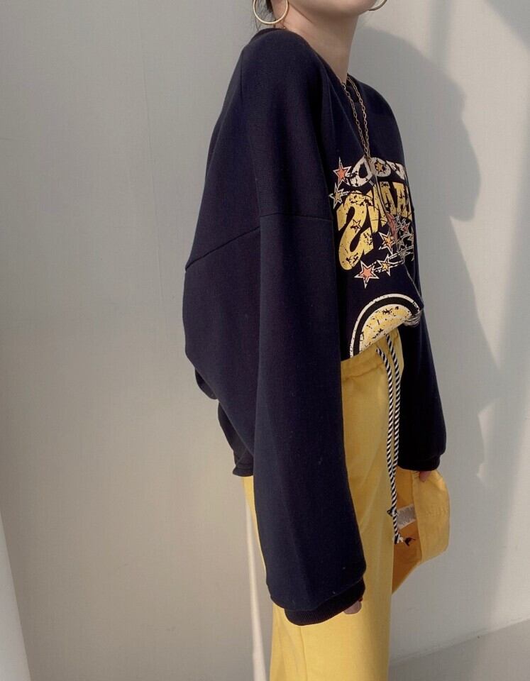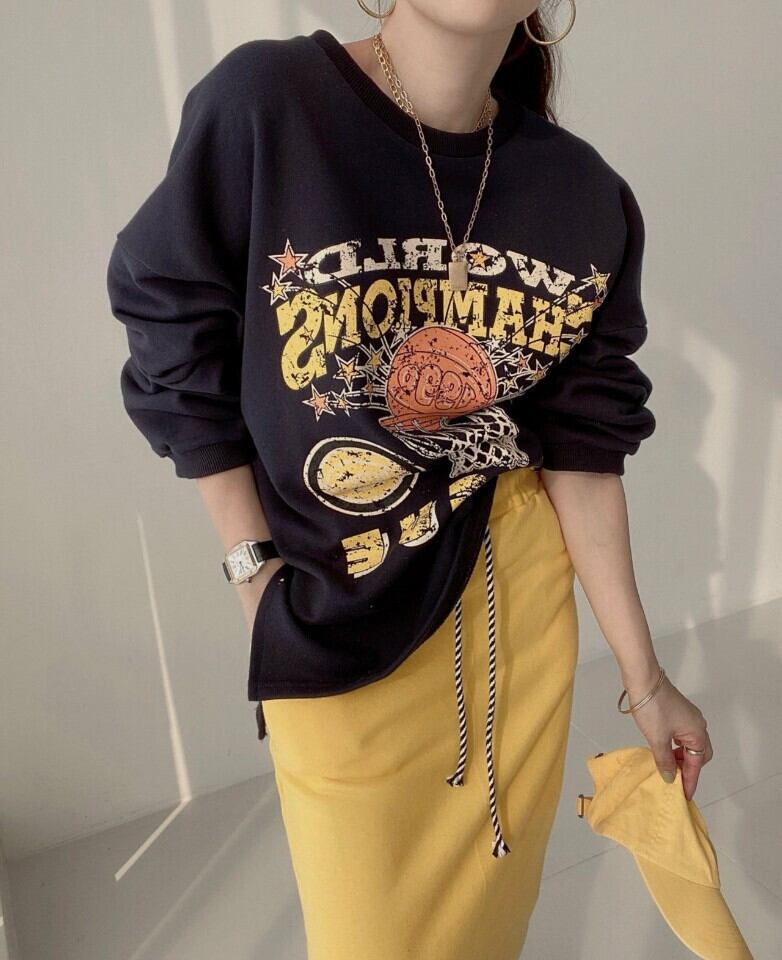 韓国ファッションNEW秋物カジュアルラウンドネックプリントルーズセーター ハイウェストウェストギャザースカート レディース ロング オータム Oネック 長袖 ウエスト muzly11075332722 | Neatly
