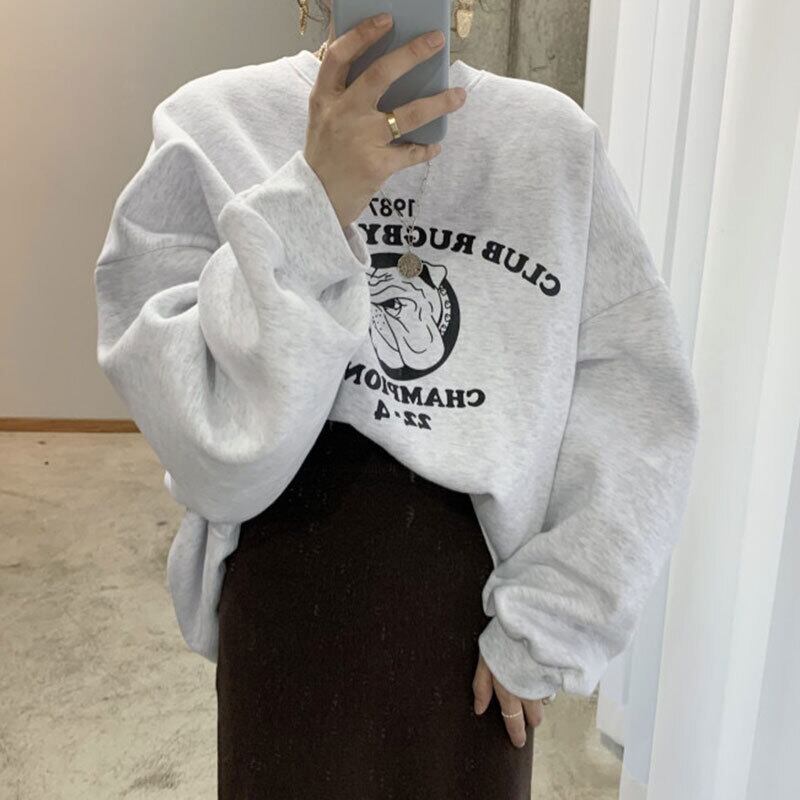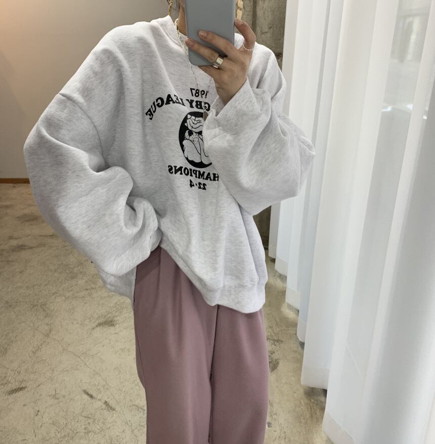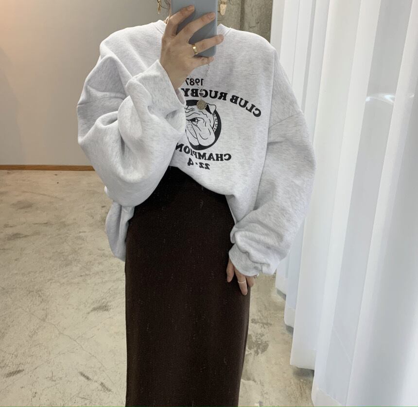 韓国ファッションNEW秋物カジュアルラウンドネックプリントセーター ハイウェスト薄手スカート レディース ロング オータム Oネック 長袖 ウエスト muzly26878093197 | Neatly