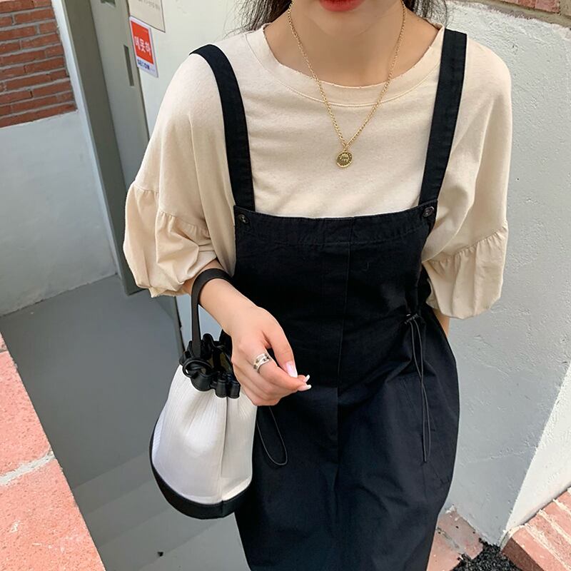 色:白いTシャツ,アプリコットTシャツ,グレースカート,黒スカート
