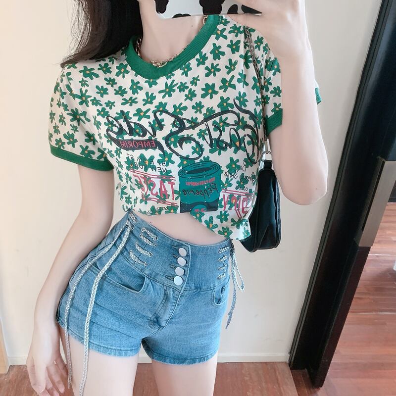 サイズ:S,M,L,女性の2021年の新しいデザインセンスニッチ夏夏ウェアヘッジ薄いセクションスリム痩身セクシーな塩になることができます甘い甘いボトミングシャツシックな爆発ファッション年齢の削減
