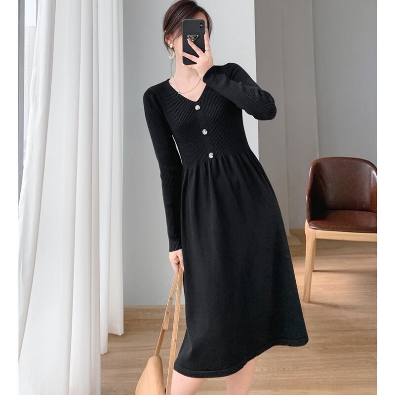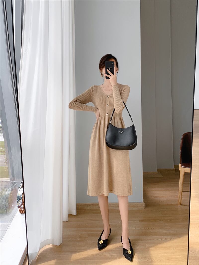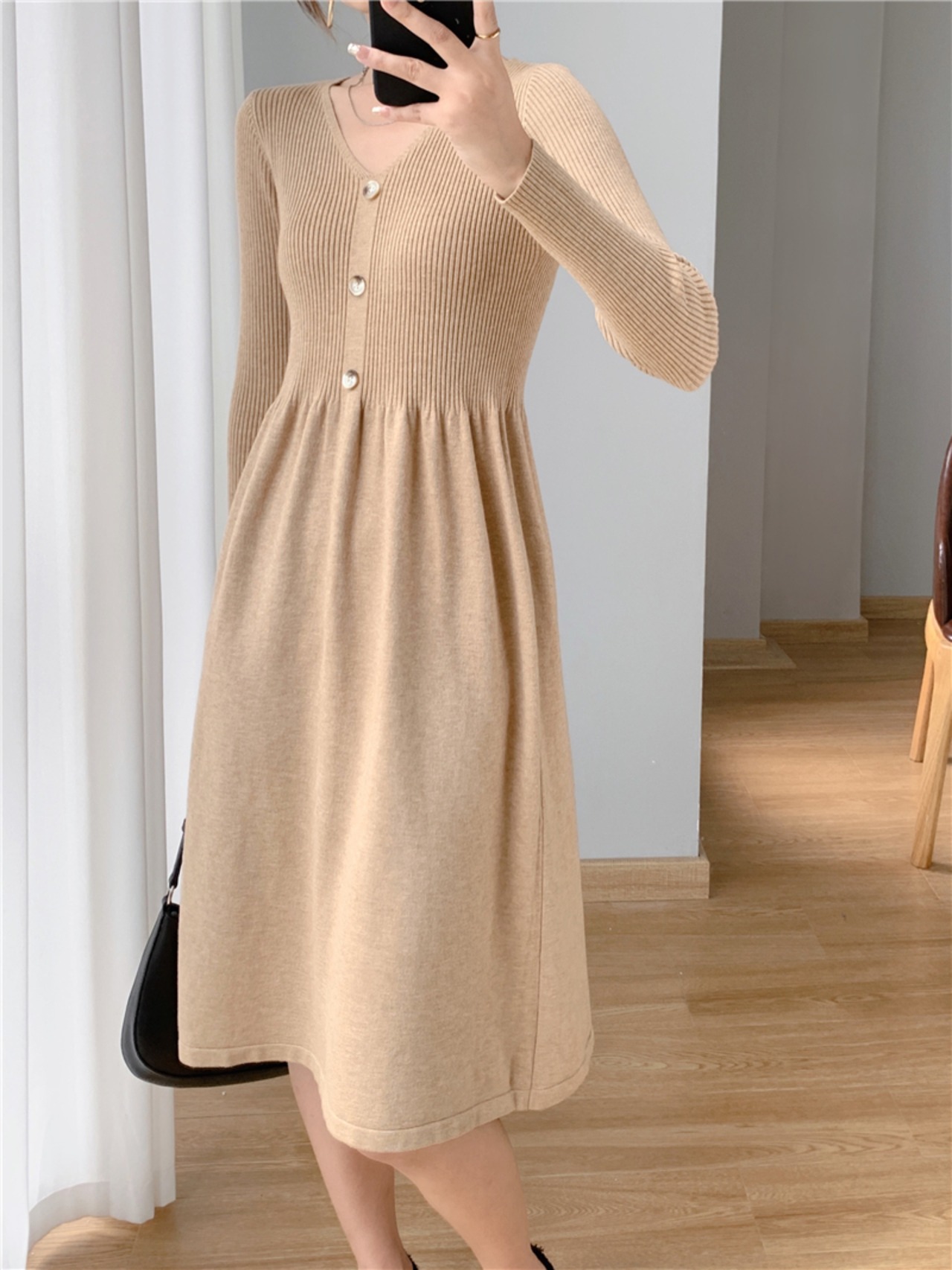 Vネックニットワンピースコート レディース秋物ウィンタースタンダードウェスト薄手セーター スカート レトロ オータム 冬物 ウエスト NEW mengruling45042620689 | Neatly