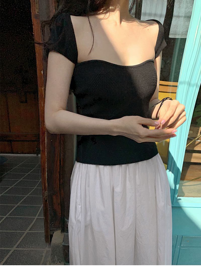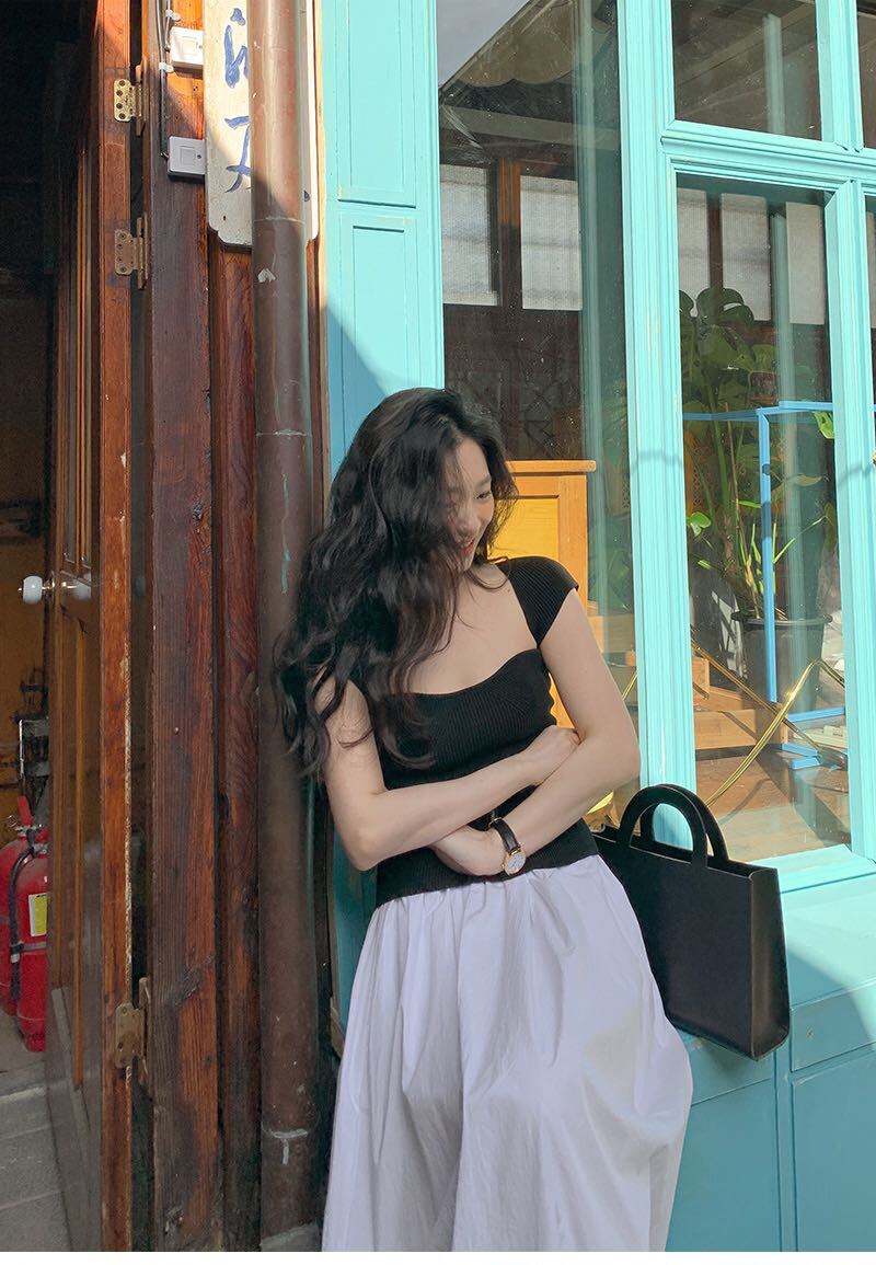 韓国ファッションNEW夏服スタンダードカラースリムニットトップス ハイウェストウェストロングスカート レディース レトロ 夏物 スクウェア ウエスト muzly38865439832 | Neatly