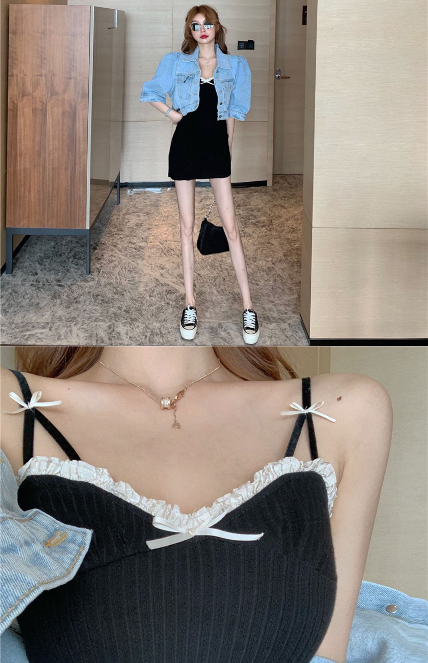 色:デニムジャケット【07793】,黒のベストドレス[07794]
