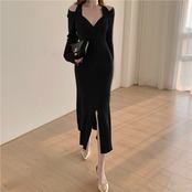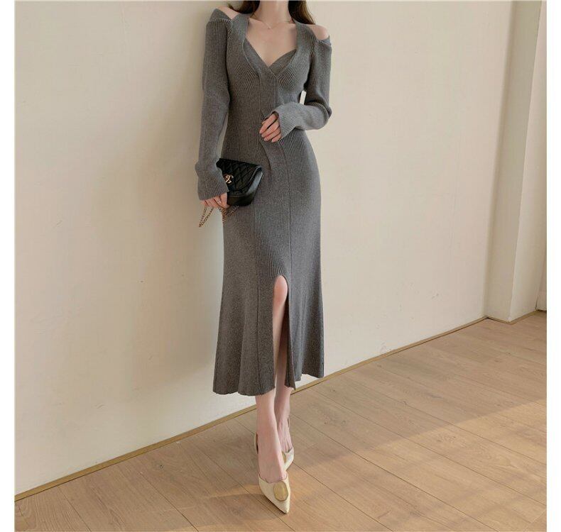 スプリングニットゆったりワンピースレディース秋物ウィンタースタンダードセーター スカート ロング レトロ 春物 オータム 冬物 長袖 ミドル丈 mengruling72140550341 | Neatly