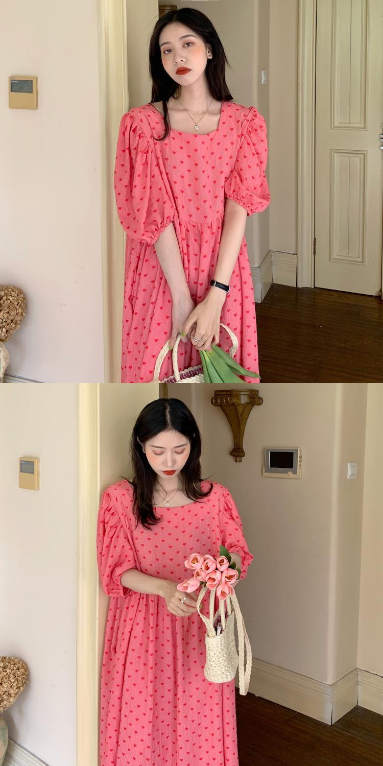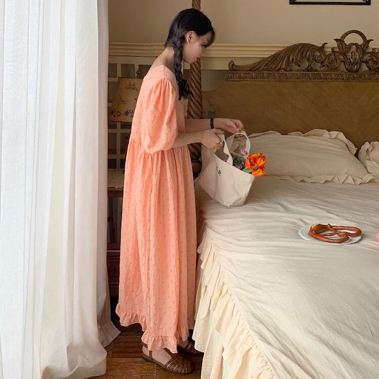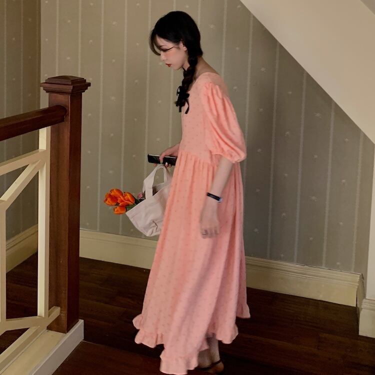 スタイルパフスリーブスリーブロングスカート 韓国ファッション夏服ワンピース 大人ガーリー スウィート キュート カジュアル 夏物 muzly15582150915