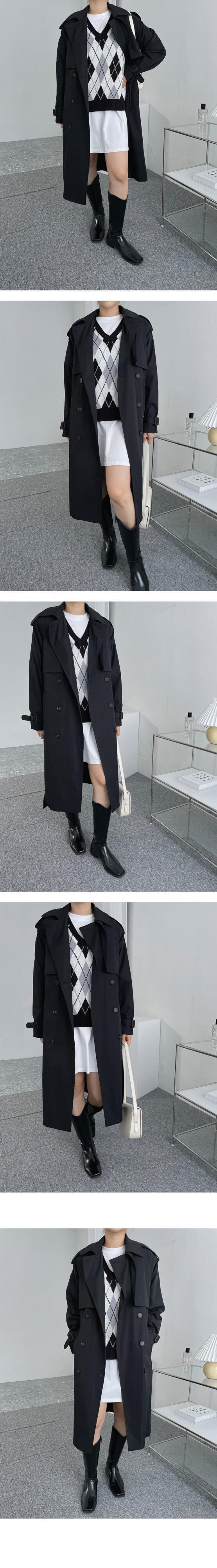韓国ファッション秋物ダブルブレストロングコート ウェスト 長袖 オータム ウエスト muzly16447529931