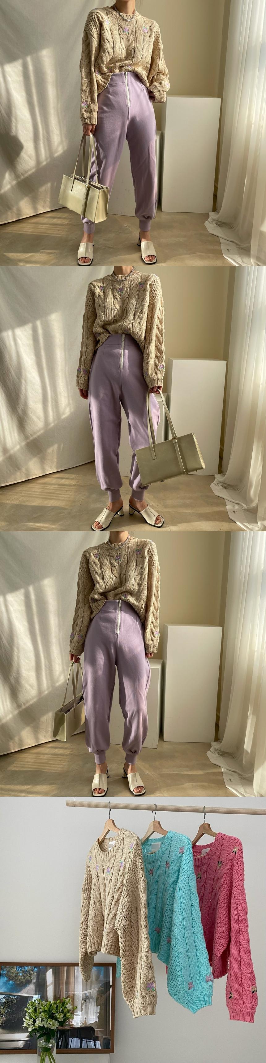 スタンダード刺繍ルーズスリーブショートニットセーター 秋物長袖 ロング ランタンスリーブ レトロ 大人ガーリー スウィート キュート カジュアル オータム フラワーデザイン muzly10147409775 | Neatly