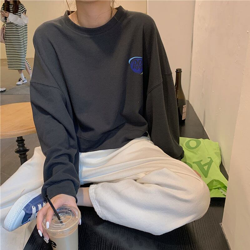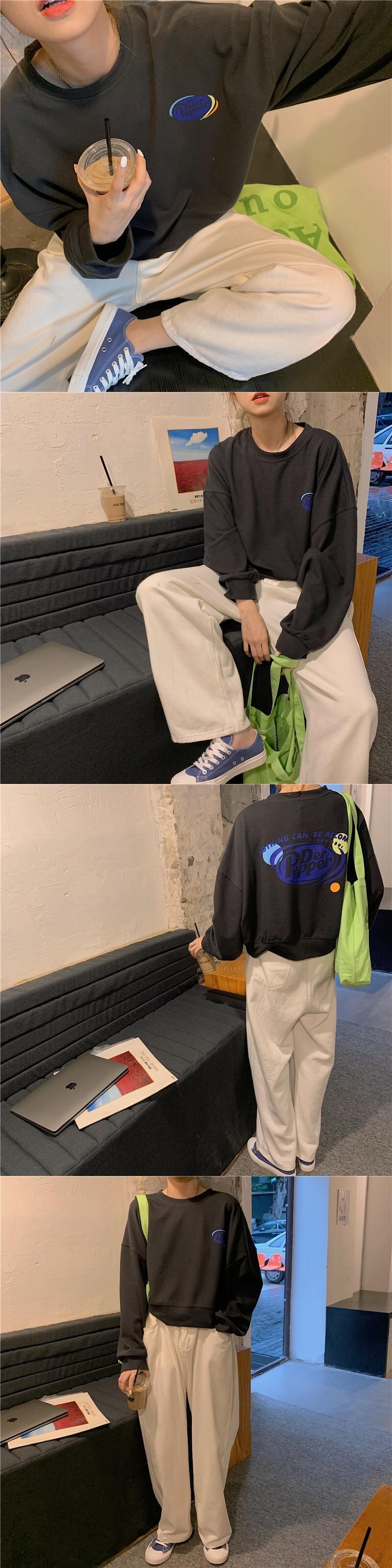 秋物ラウンドネックプリントショートプルオーバー ルーズセーター ロング オータム Oネック 長袖 muzly62243234117