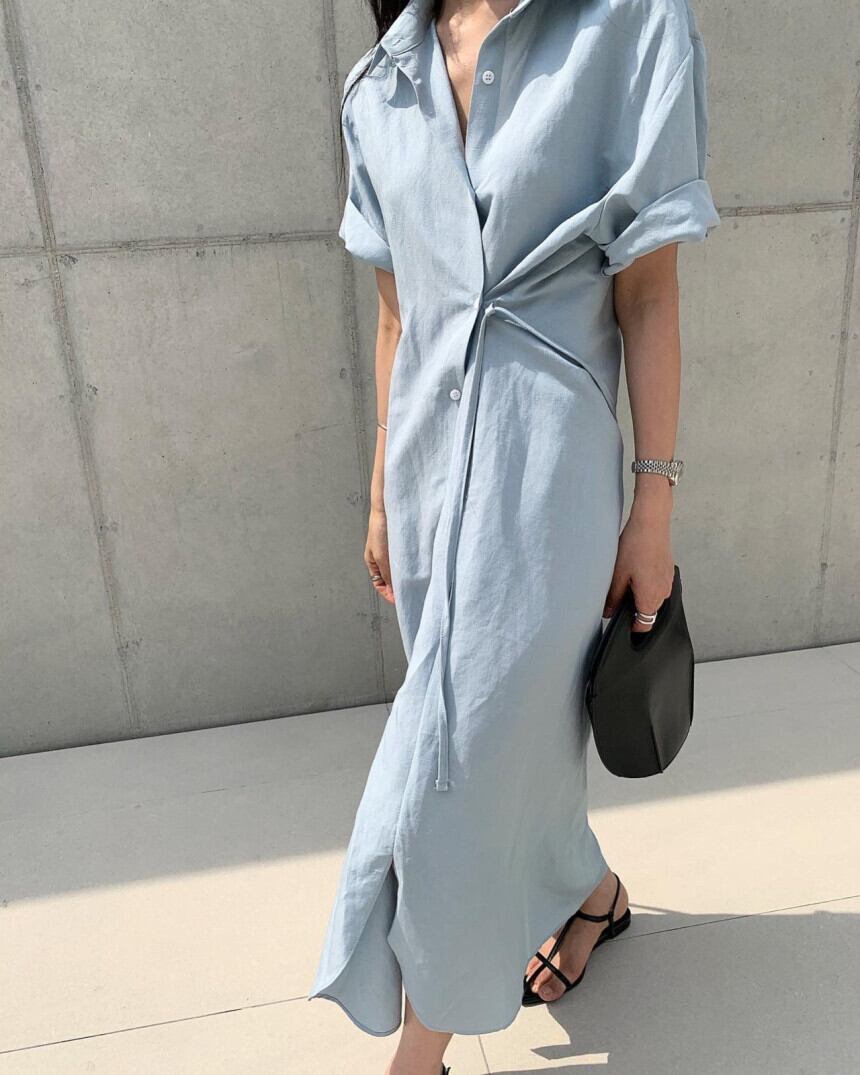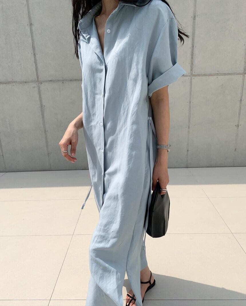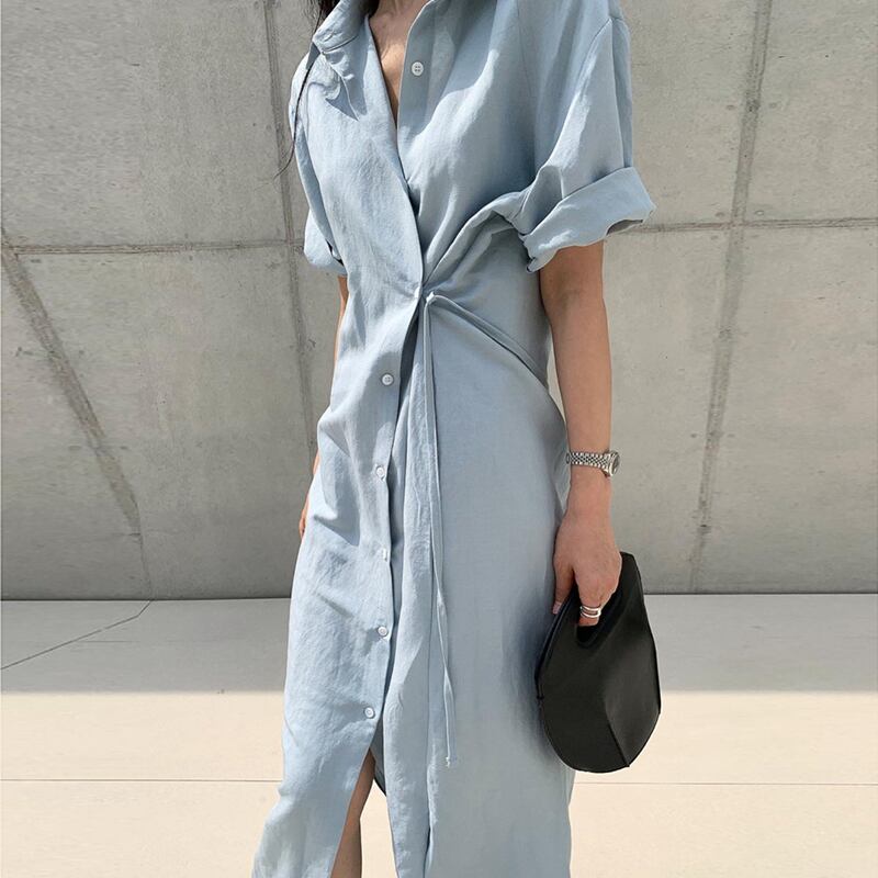 韓国ファッション夏服スタンダードロングスカート アシンメトリーサイドボタンルーズミニ ワンピースワンピース レトロ 夏物 muzly52950503394