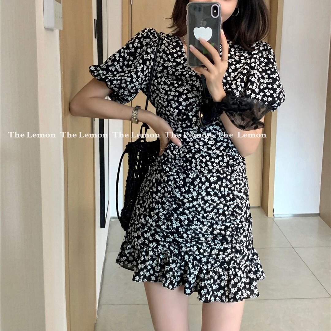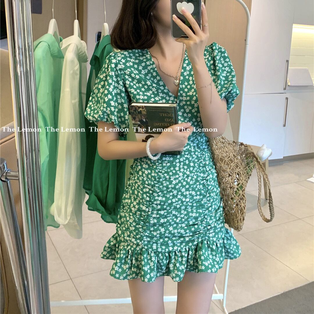 Vネックスリーブフローラルショートスカート ミニ ワンピースワンピース レッド 花柄 muzly5840983611