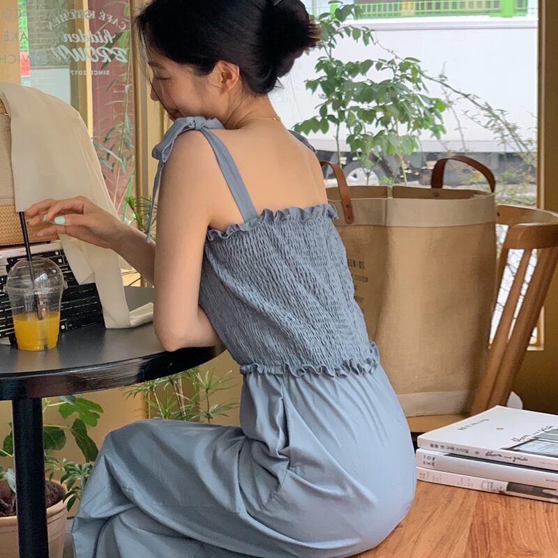 夏服スタンダードホワイトルーズ薄手パンツ カジュアルジャンプスーツ オールインワン レディース レトロ 夏物 muzly64742661527