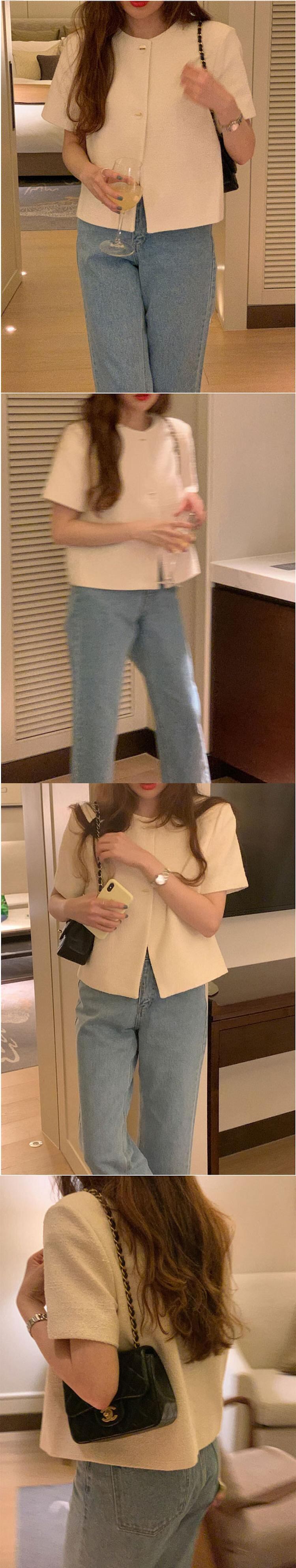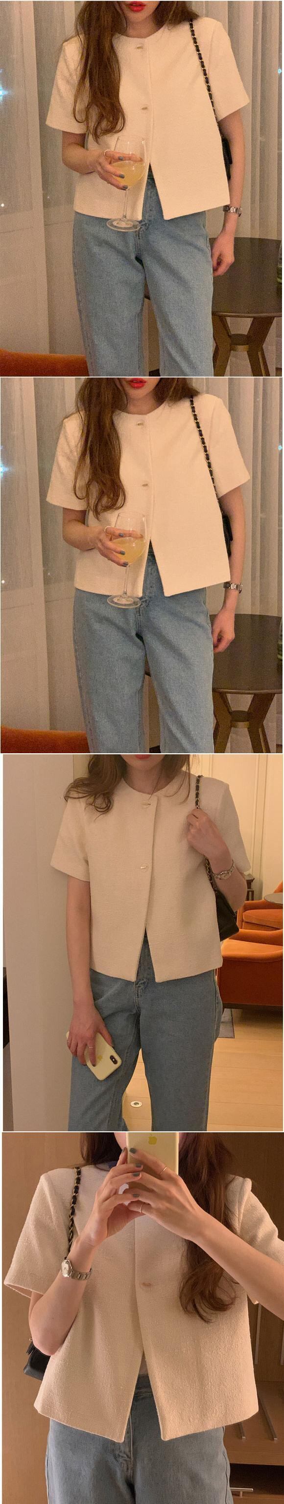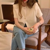 夏服ショートスタンダードミニマリストラウンドネックジャケット レディース レトロ 夏物 Oネック muzly66357645726