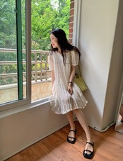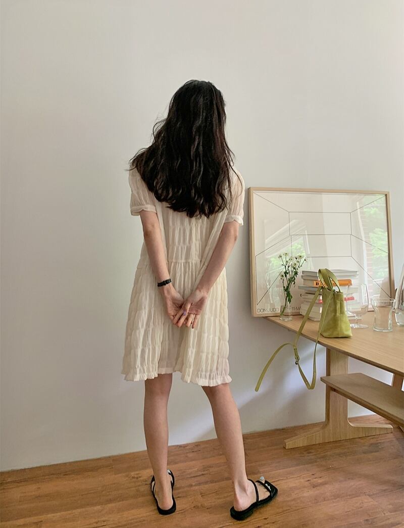 夏服ラウンドネックプリーツスリーブワンピースルーズ半袖スカート レディース ショート ハーフスリーブ 大人ガーリー スウィート キュート カジュアル 夏物 Oネック muzly47952181963 | Neatly