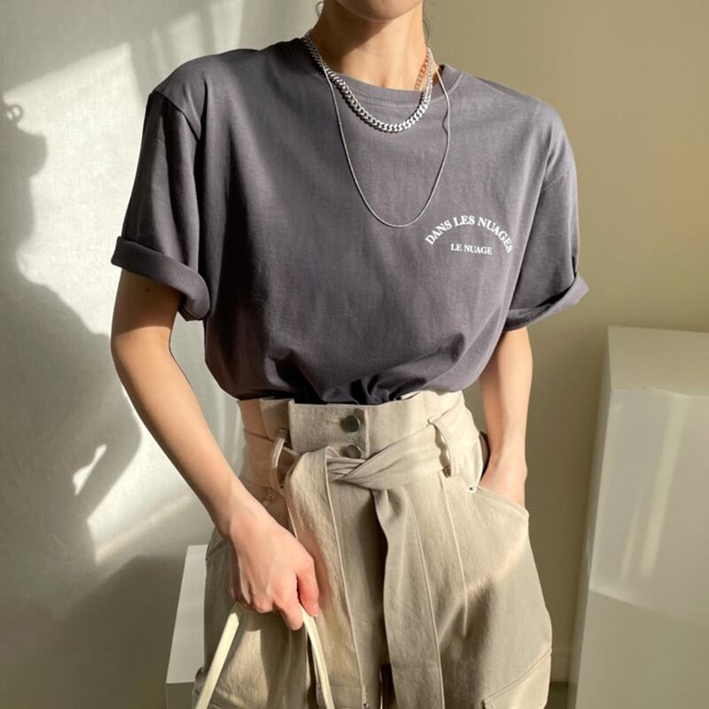 韓国ファッションNEW夏服ラウンドネックベーシックルーズプリントカジュアルTシャツトップス 夏物 Oネック muzly62472241657