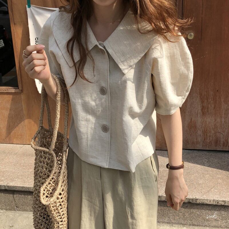 夏服スタンダードスリーブルーズシャツ トップス レディース レトロ 夏物 muzly66845594584