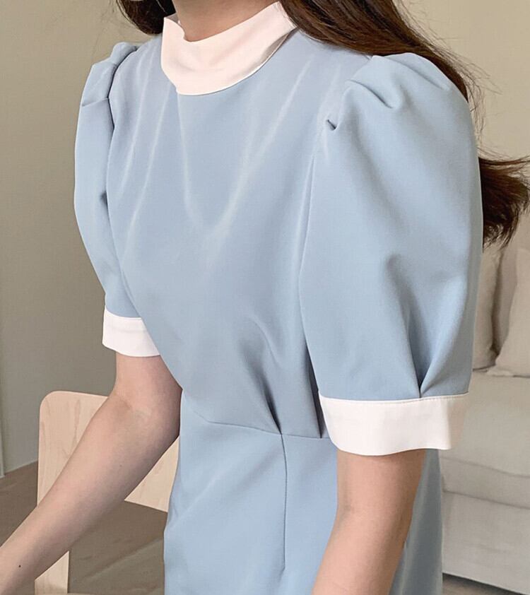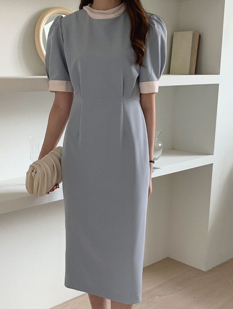 韓国ファッションスプリングカラーラウンドネックスリーブロングウェスト薄手ミニ ワンピースワンピースレディース 大人ガーリー スウィート キュート カジュアル 春物 Oネック ウエスト ミドル丈 muzly15587128142 | Neatly