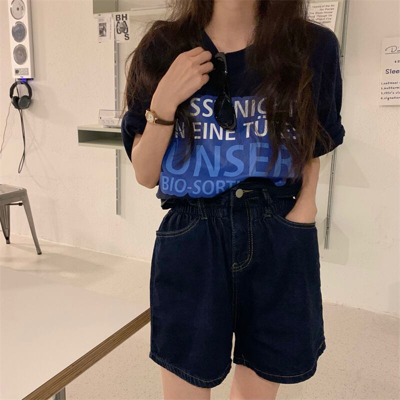 韓国ファッション夏服ラウンドネックプリントルーズTシャツトップス Flowerデザイン ハイウェストウェストカジュアルショーツ 夏物 Oネック フラワーデザイン ウエスト muzly26056848006 | Neatly