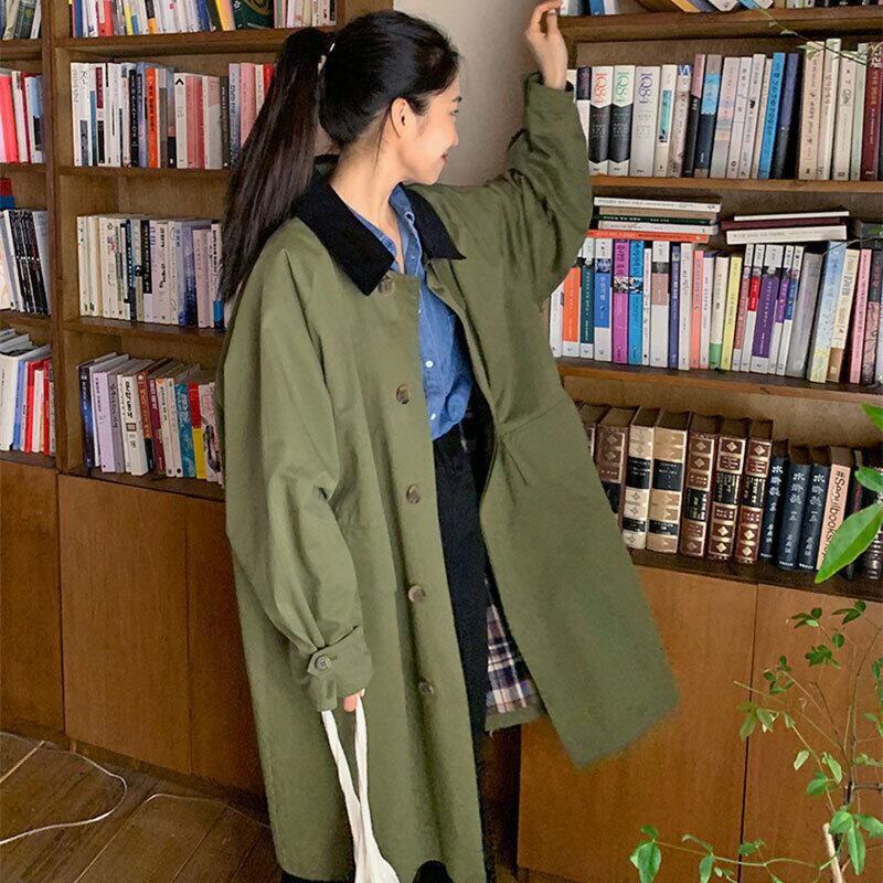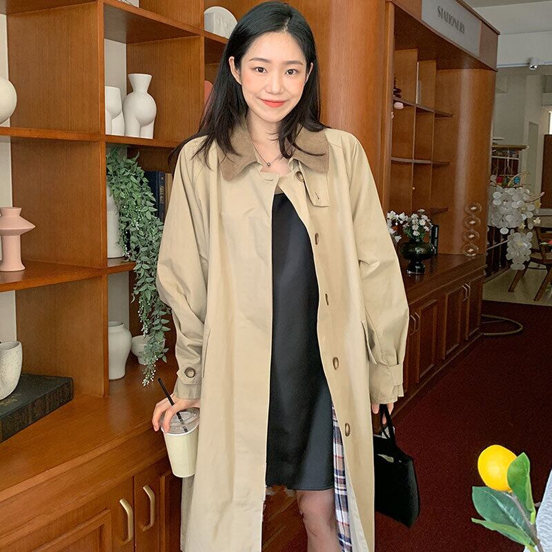 韓国ファッション秋物ウィンタースタンダードカラーコート ルーズ ロング レトロ オータム 冬物 長袖 ミドル丈 muzly4293798528