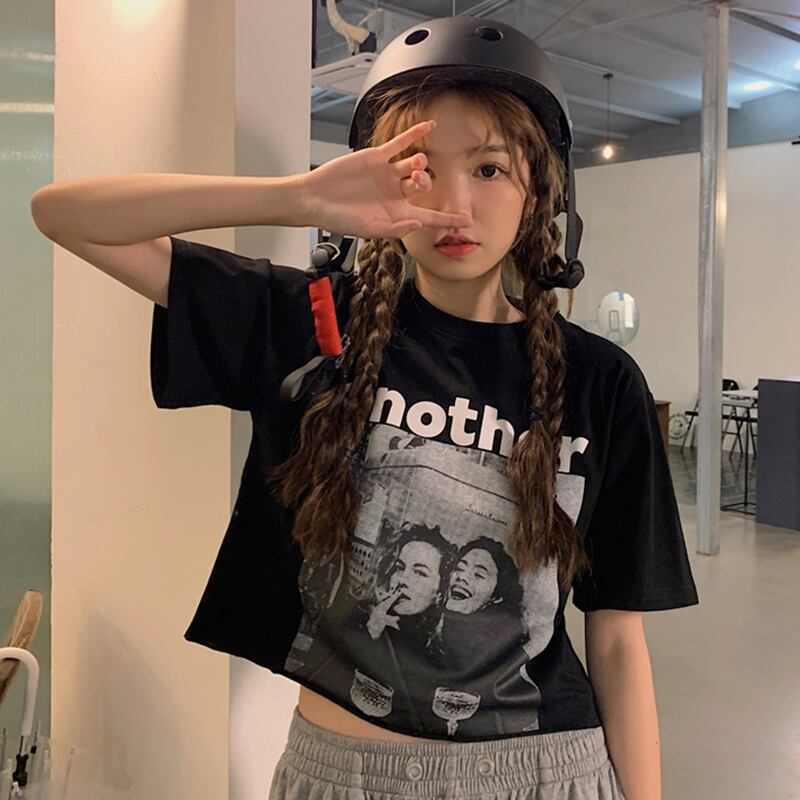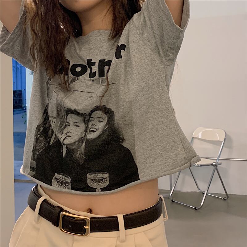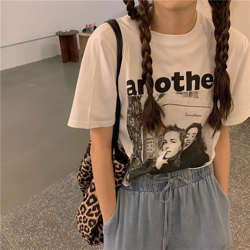 NEW夏服ラウンドネックベーシックプリントショートカジュアルTシャツトップス 夏物 Oネック muzly54358454960