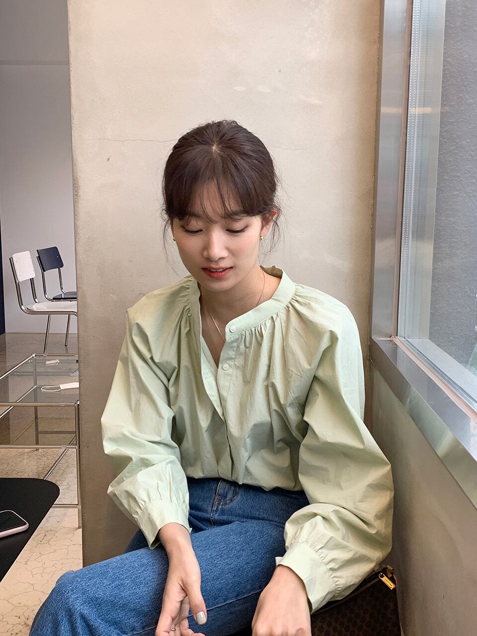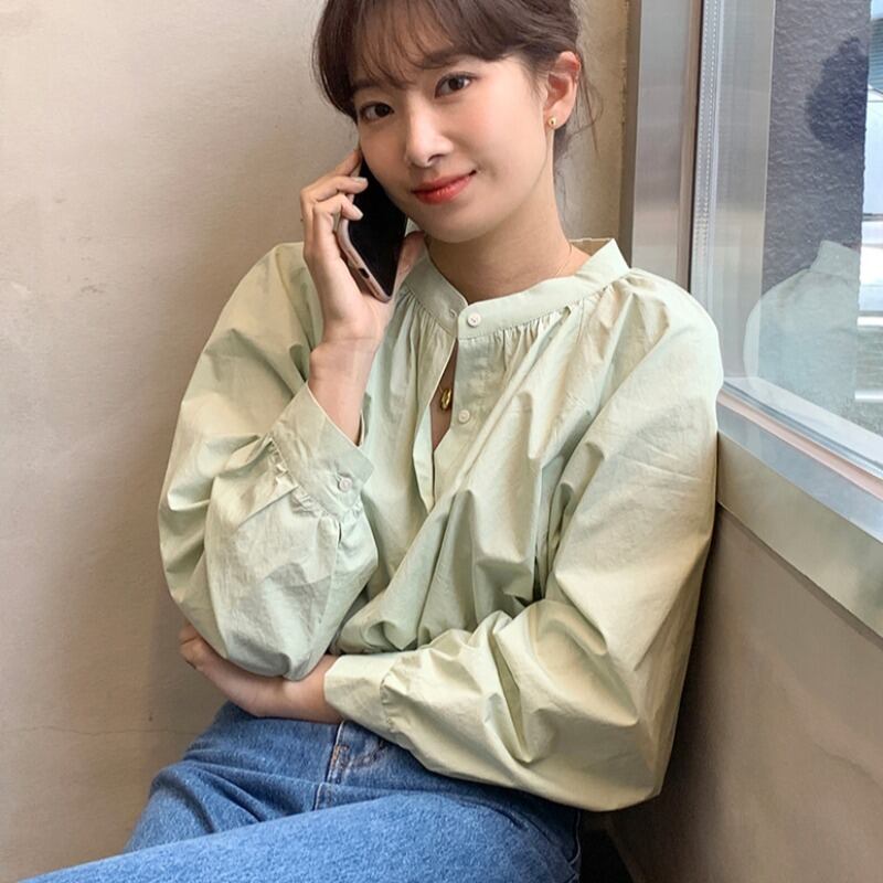 韓国ファッション秋物ラウンドネックルーズシャツ ブラウス レディース ロング 大人ガーリー スウィート キュート カジュアル オータム Oネック 長袖 muzly58112573423 | Neatly