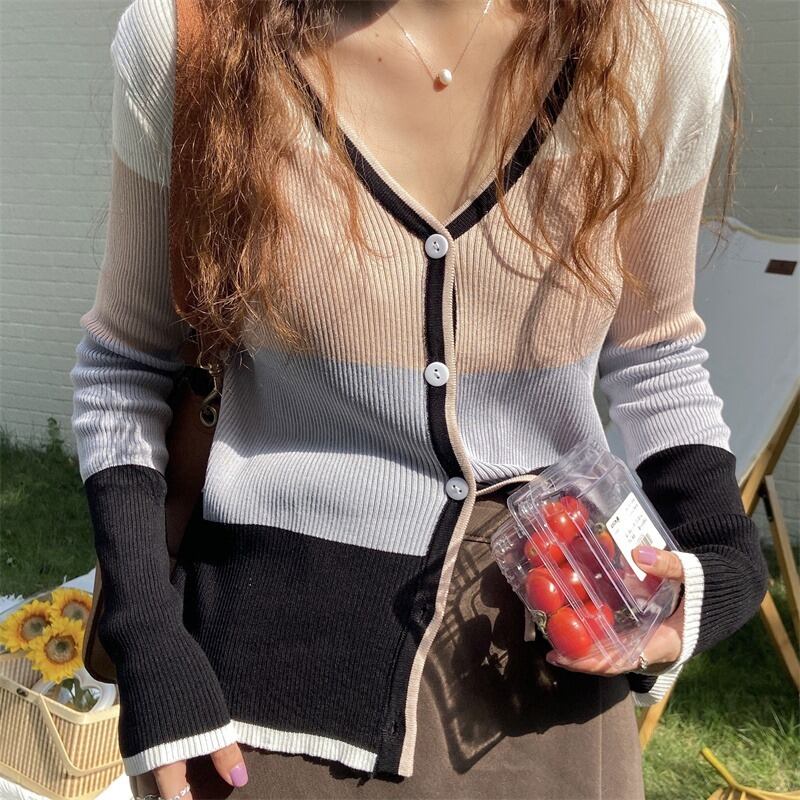 スタンダードカラーVネックスリム薄手ニットカーディガンジャケット 秋物ウィンタートップス レトロ オータム 冬物 muzly43901899275
