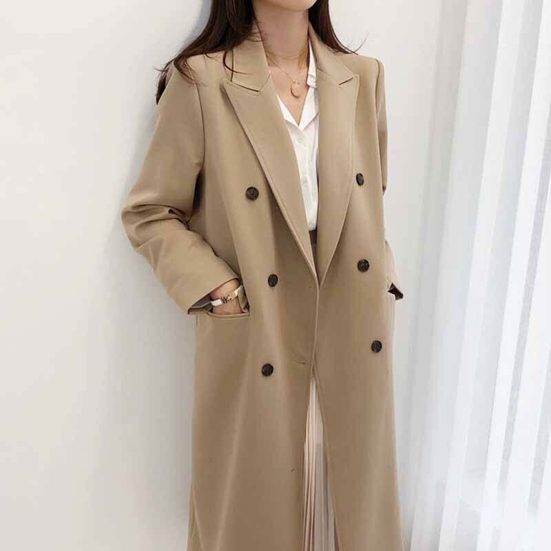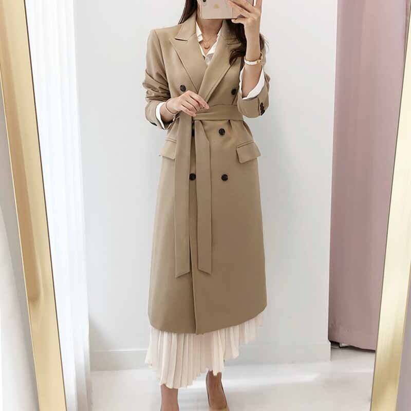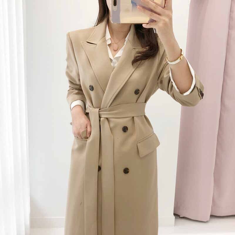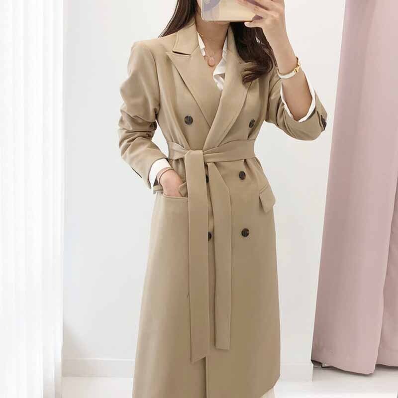 秋物ダブルブレストブレザー ベルト ウェストコート ロング オータム ハーネス 長袖 ウエスト ミドル丈 muzly19044489916