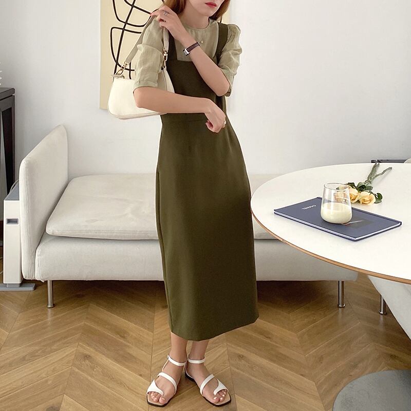 韓国ファッションNEWスプリングスタンダードスタイルラウンドネックシャツ ロングウェストワンピース レトロ 春物 Oネック ウエスト muzly33312911750