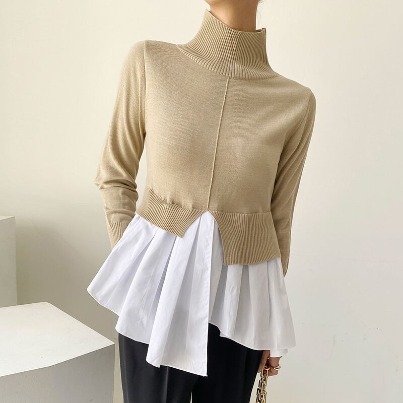 秋物カラーニットトップス スリムシャツ ロング オータム ステッチ 長袖 muzly58442323228