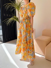 スタンダードスタイルFlowerデザイン カラーレースウェストロングスカート 夏服ミニ ワンピースワンピース レトロ 夏物 フラワーデザイン スクウェア ウエスト muzly23196632299 | Neatly