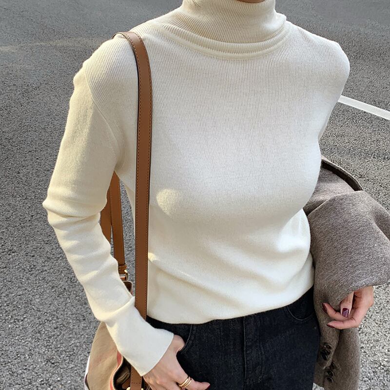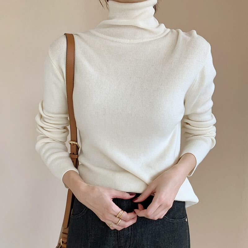 秋物ウィンターベーシックソリッド カラーニットゆったりシャツ トップス スリム薄手セーター ロング オータム 冬物 ソリッドカラー 長袖 muzly81520917484