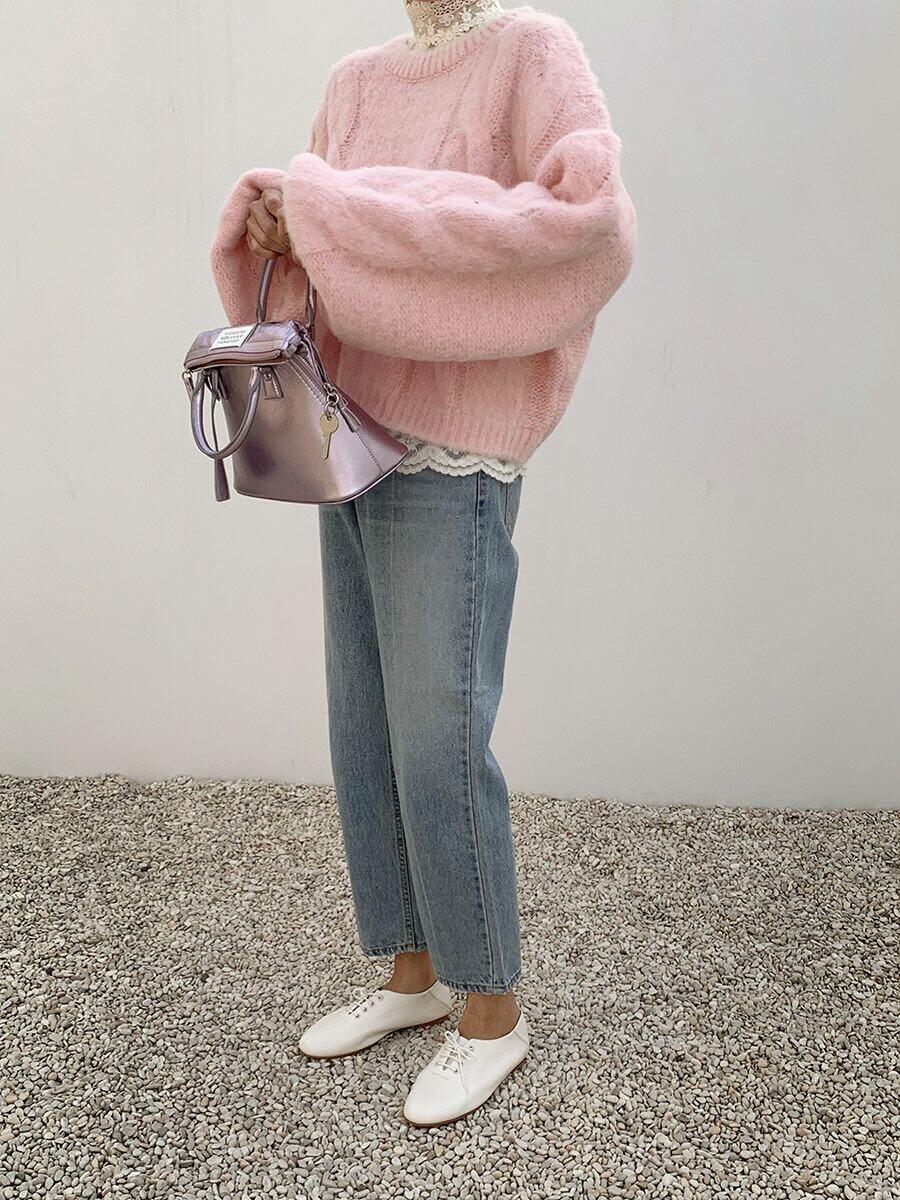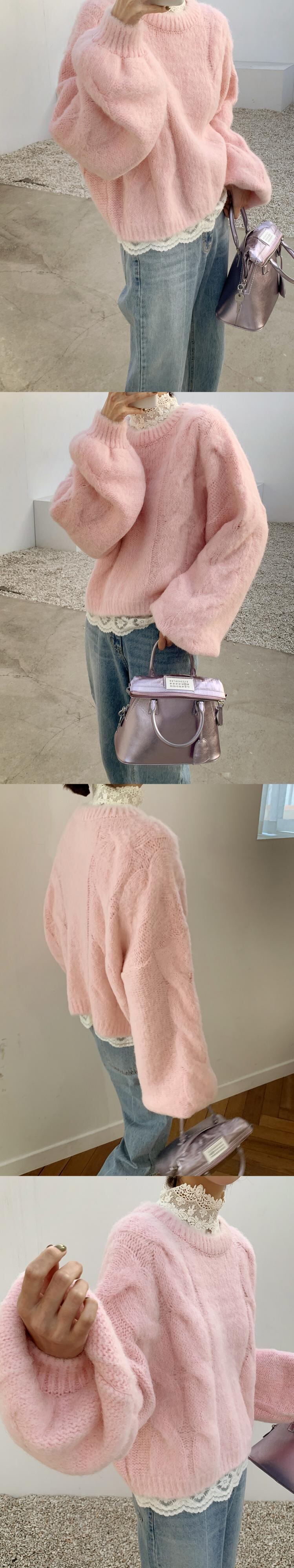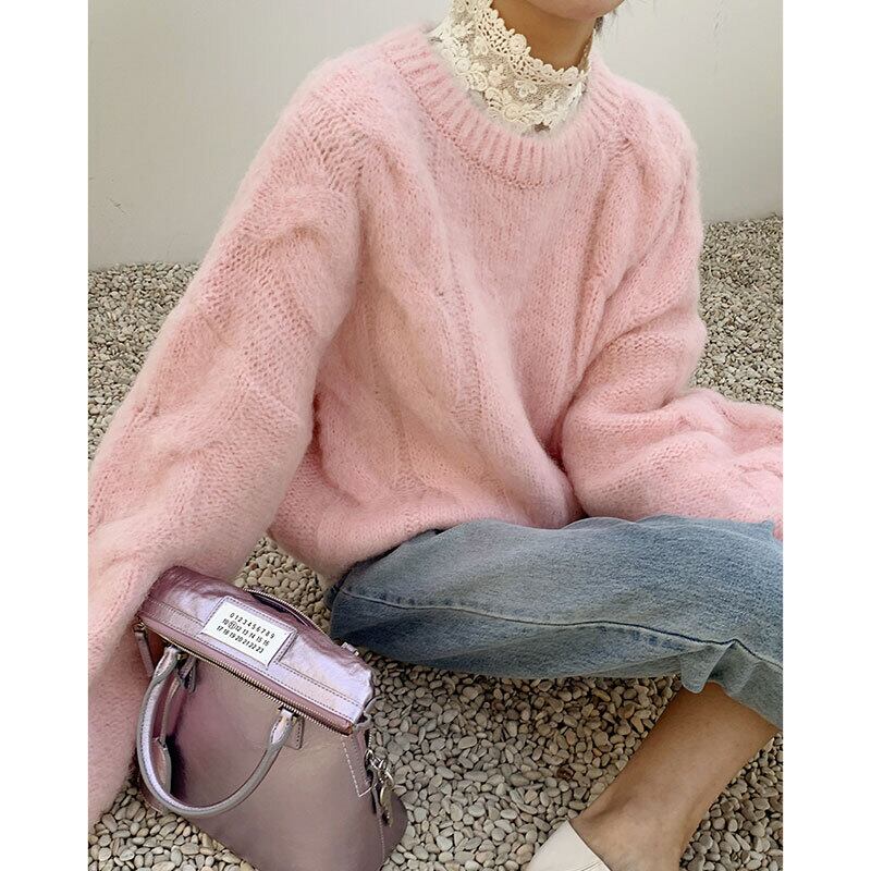 NEW秋物レースゆったりシャツ ラウンドネックルーズセーター レディース ロング 大人ガーリー スウィート キュート カジュアル オータム Oネック 長袖 muzly78285148687 | Neatly