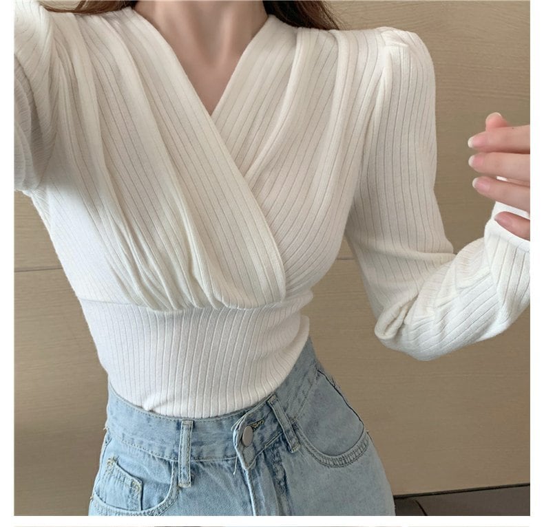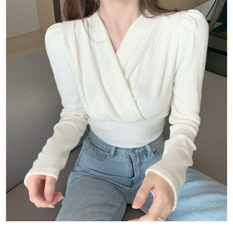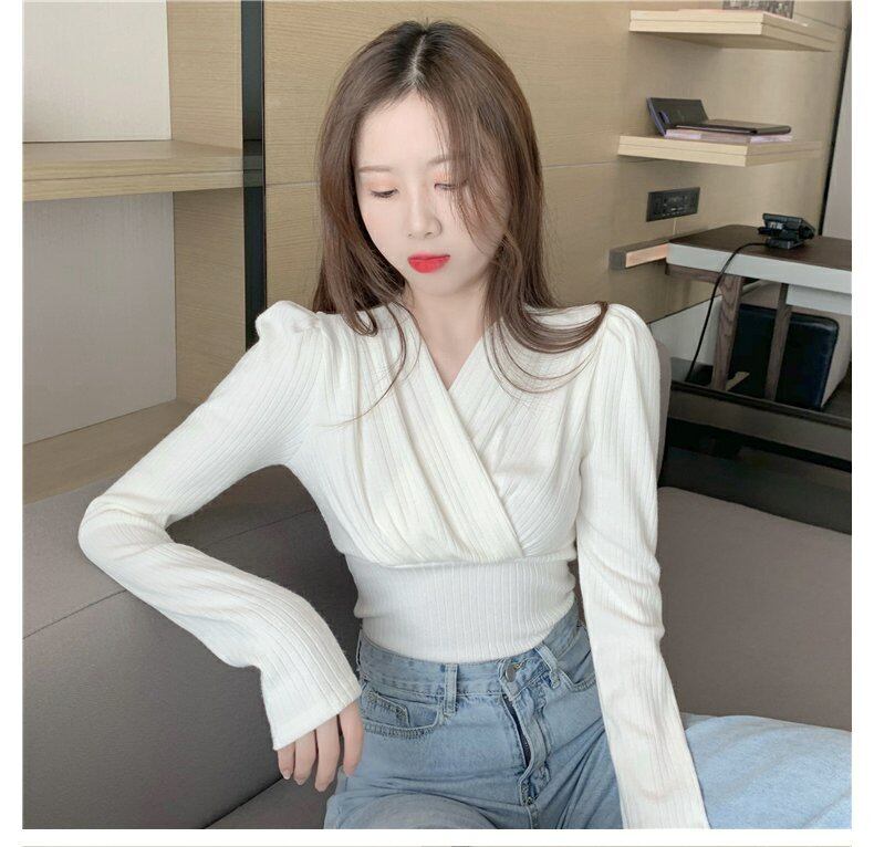 秋物ウィンタージャケット ニットゆったりシャツ スリムショートスタンダードウェストVネックセーター ロング レトロ オータム 冬物 長袖 ウエスト mengruling74744315489 | Neatly