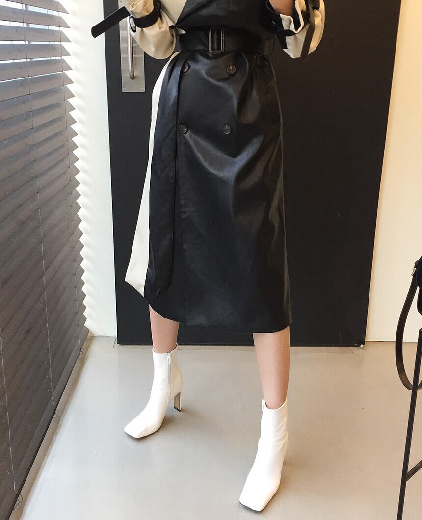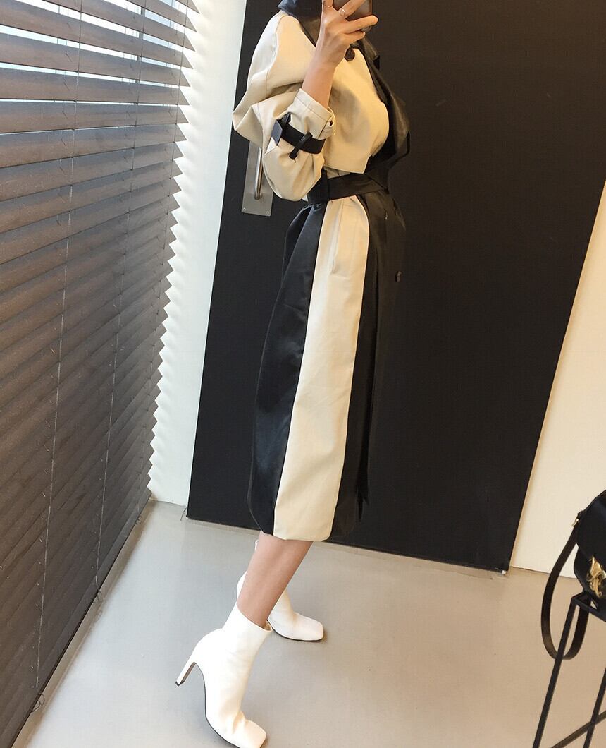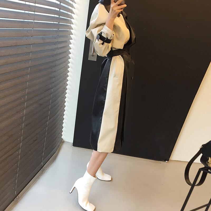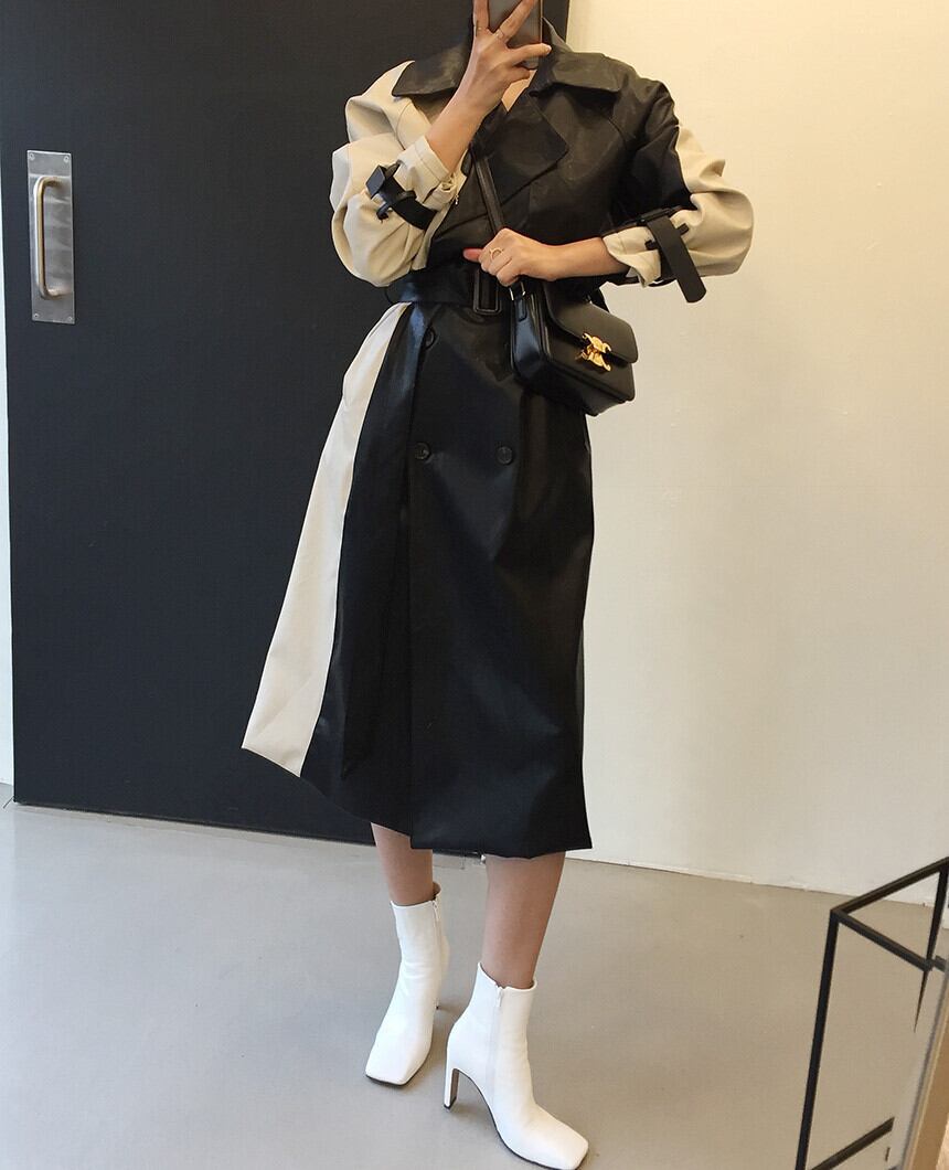 秋物スタイルウェストレザージャケット ロング レース オータム レースアップ ステッチ 長袖 ウエスト ミドル丈 muzly51807697454