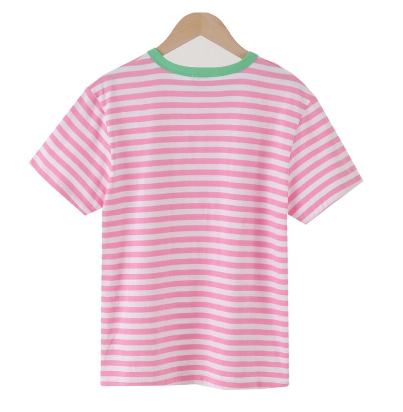 ラウンドネックカラーストライププルオーバー ブラウス レディース夏服ルーズ薄手Tシャツ 大人ガーリー スウィート キュート カジュアル 夏物 Oネック muzly84709603519 | Neatly