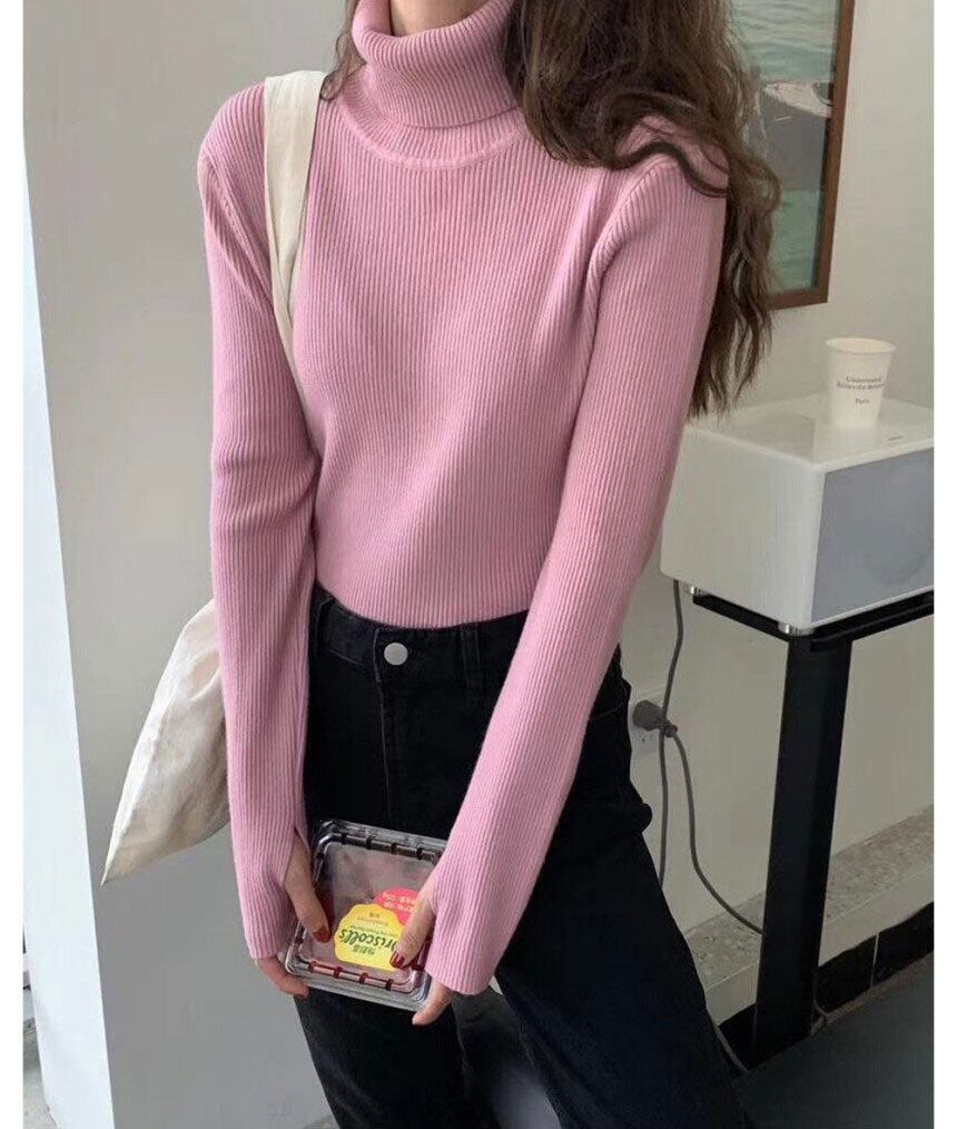 秋物ソリッド カラーゆったりシャツ トップス スリムニットセーター ロング オータム ソリッドカラー 長袖 muzly40629691826