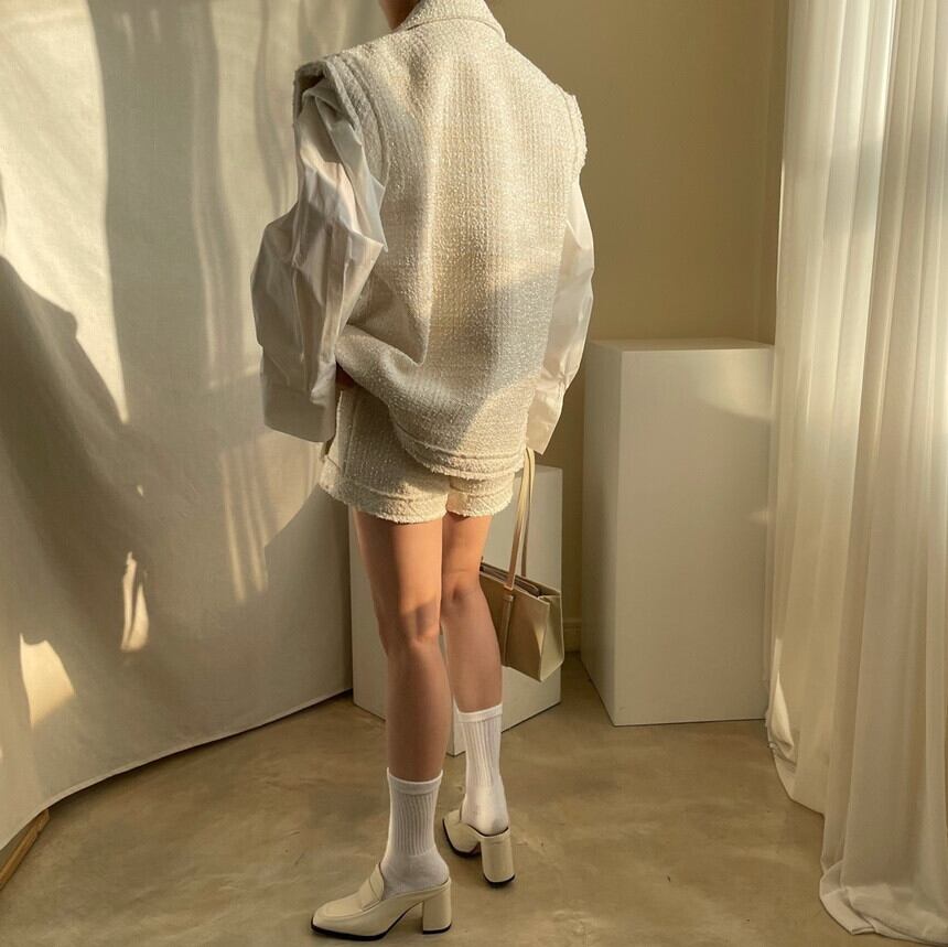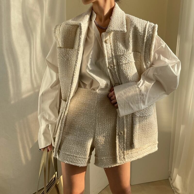 色:ベージュコート,黒いジャケット,ベージュのショートパンツ,黒のショートパンツ