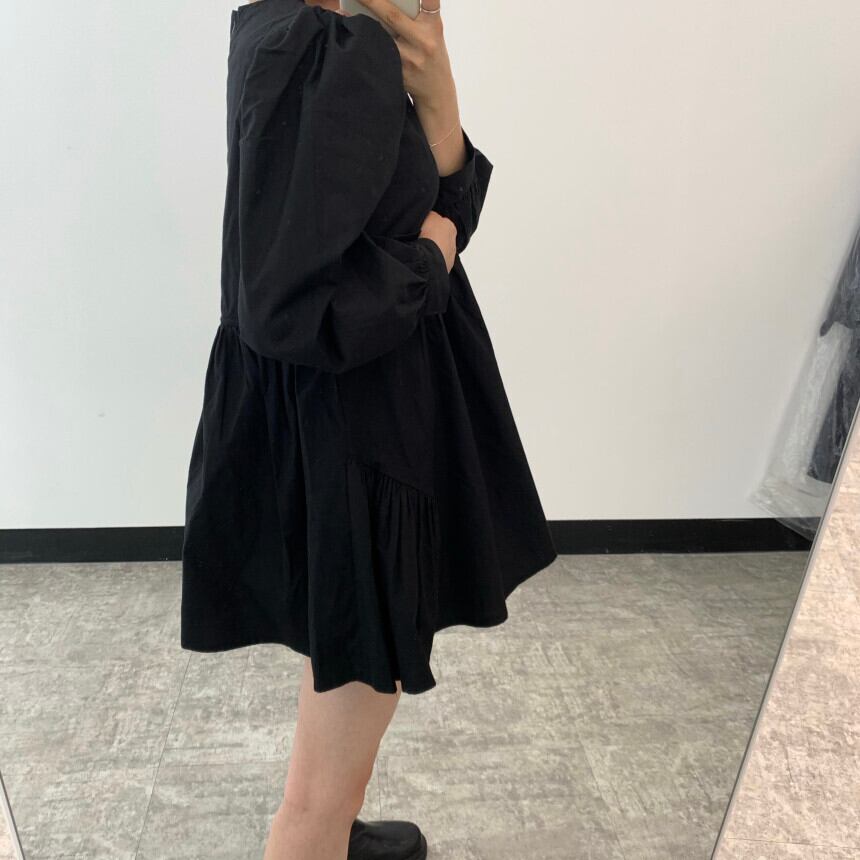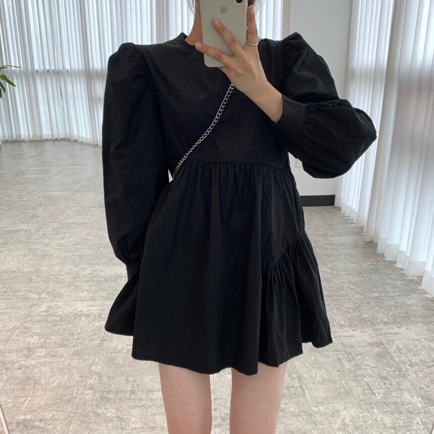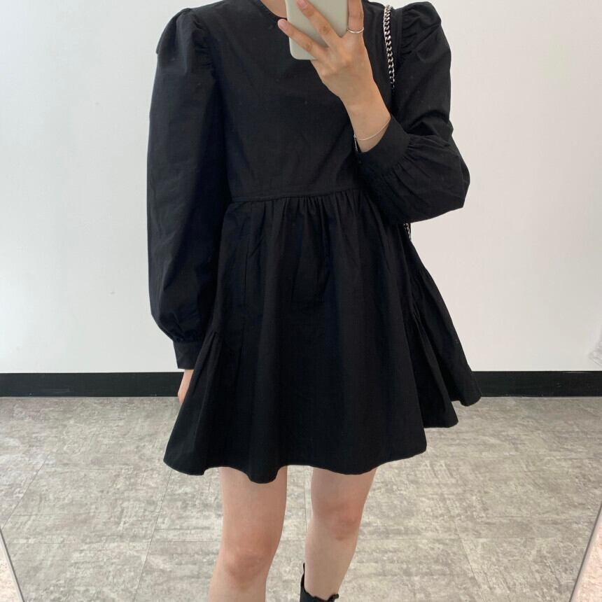 秋物Vネックスリーブ格子柄ラウンドネックワンピースレディース オータム ノースリーブ Oネック muzly89806041060