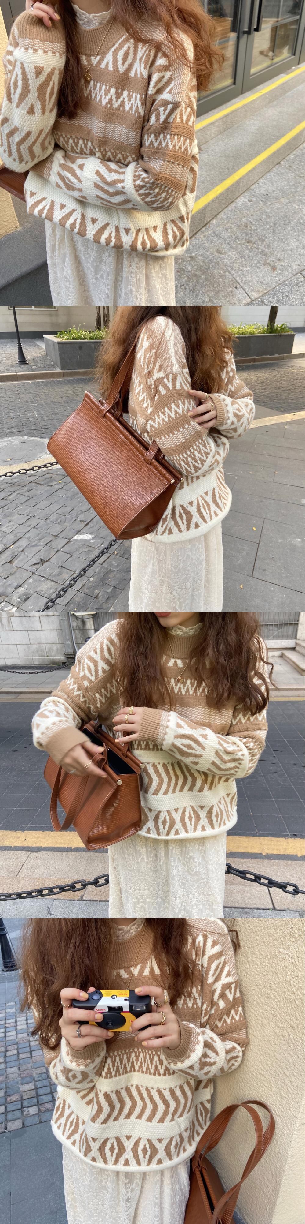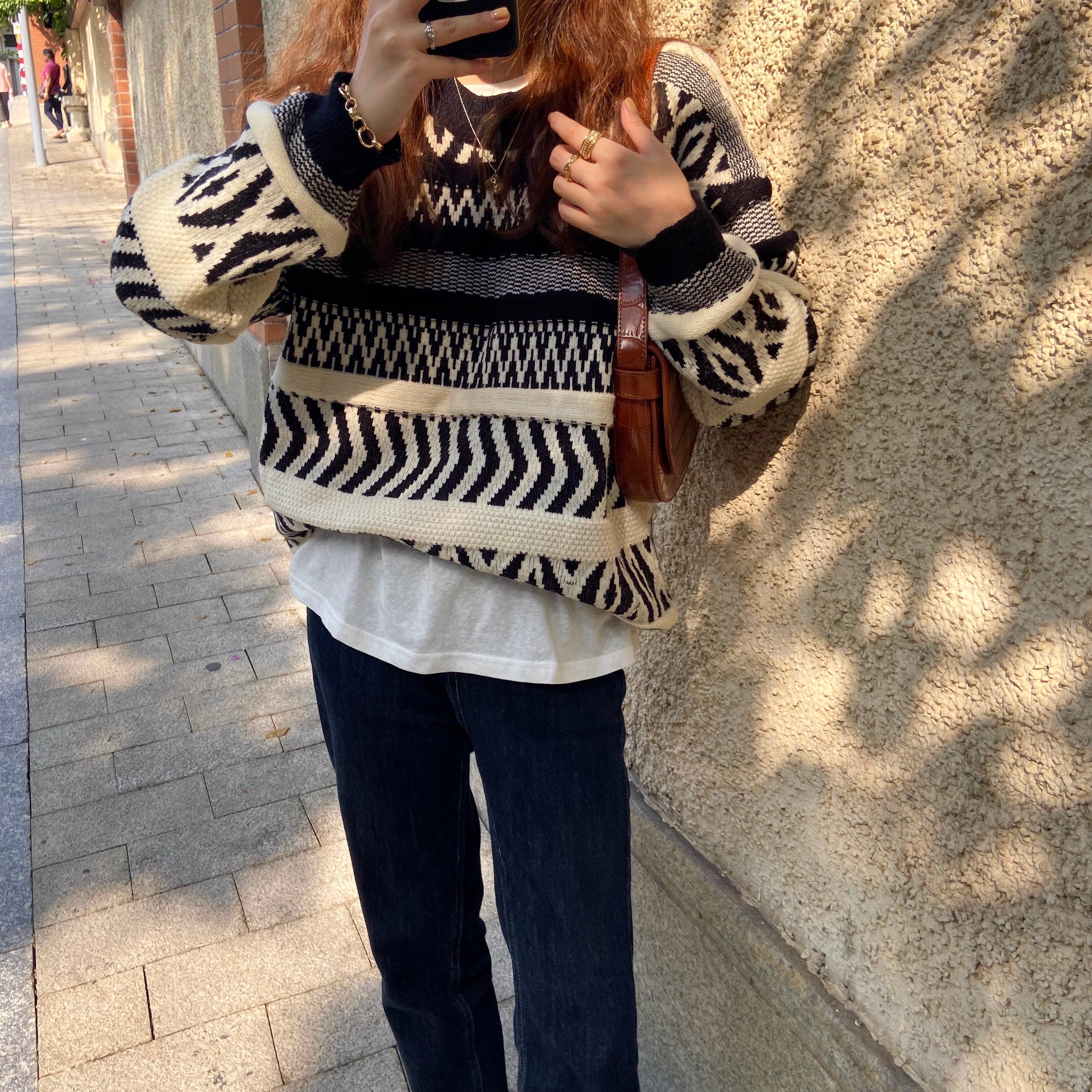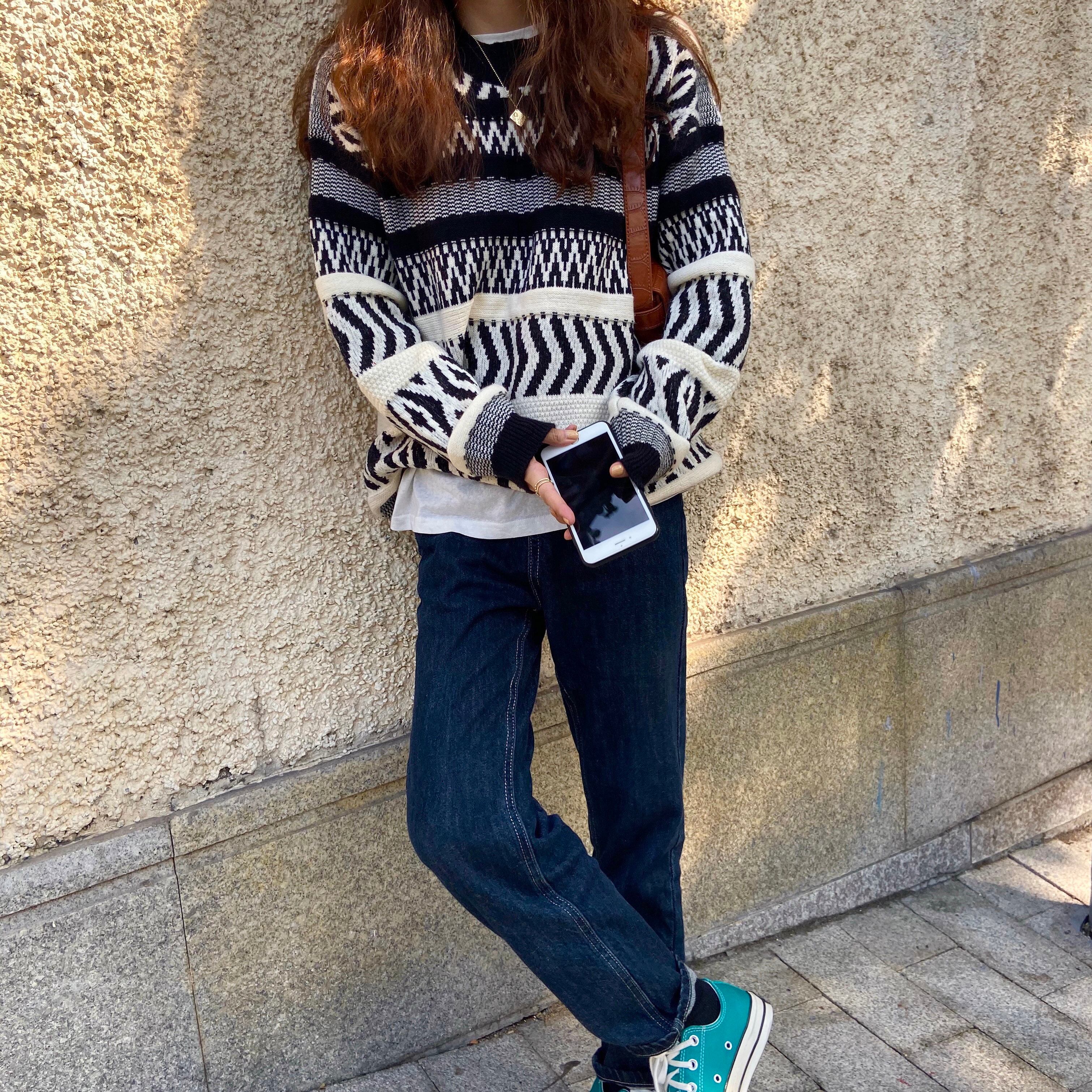 秋物スタンダードラウンドネックカラープルオーバー セーター ルーズ ロング レトロ オータム Oネック 長袖 muzly75362974991