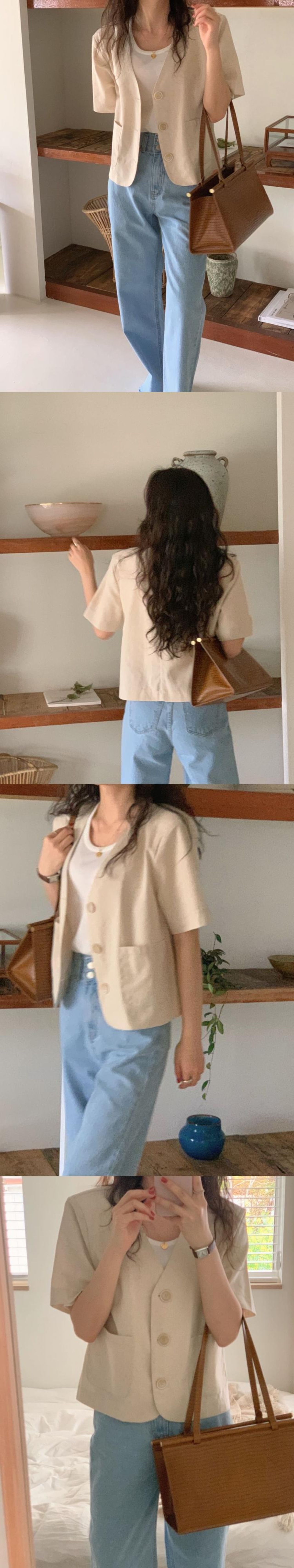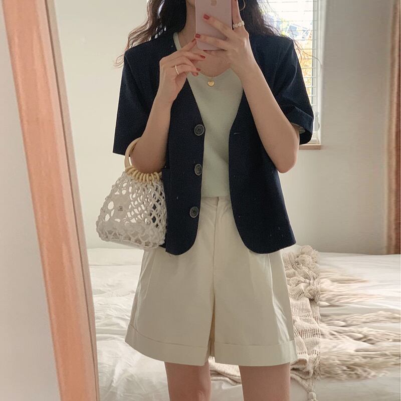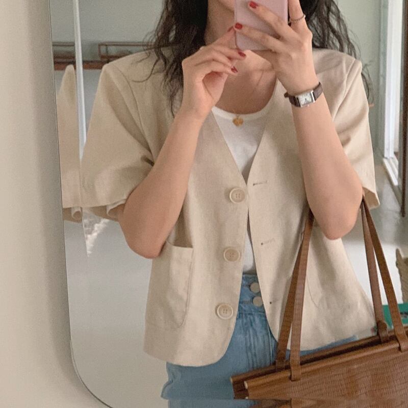 NEW夏服スタンダードVネックブラウス カーディガンジャケット コットン レトロ 夏物 muzly22243206211
