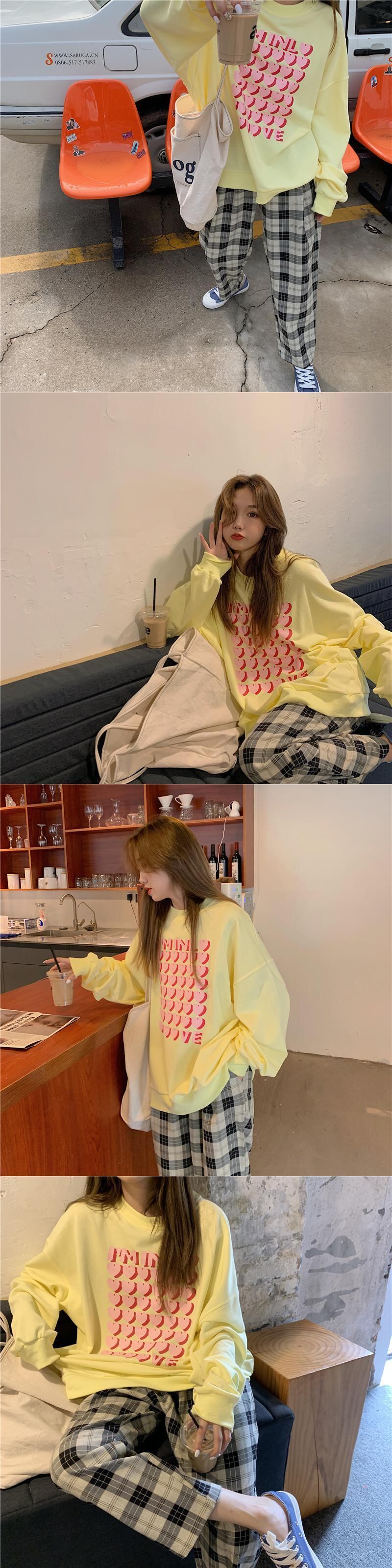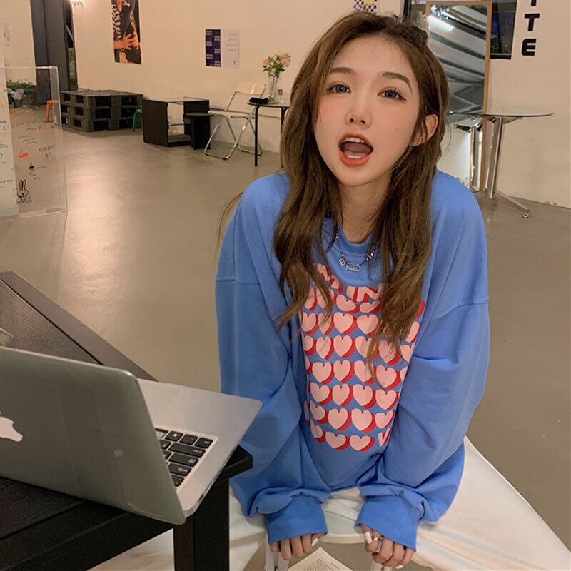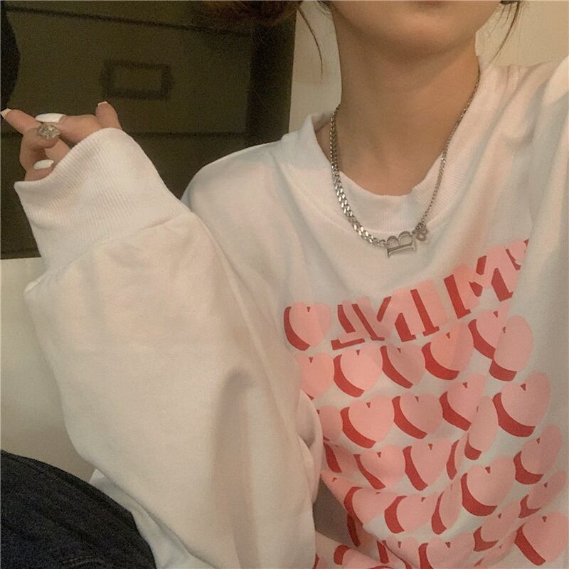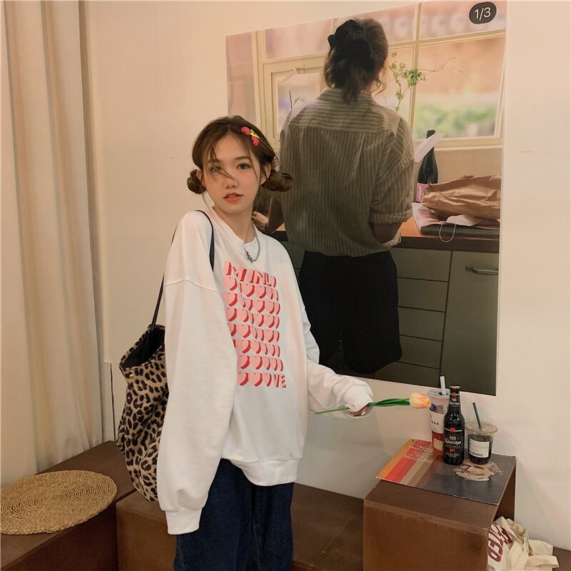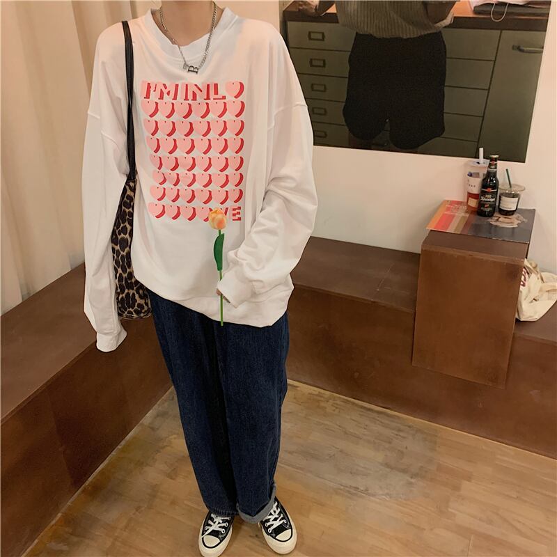 秋物ラウンドネックプリントプルオーバー ブラウス ルーズセーター ロング オータム Oネック 長袖 muzly66601625024