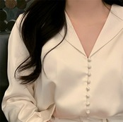 韓国ファッションスプリングスタンダードルーズシャツ ロング レトロ 春物 長袖 muzly52756926683