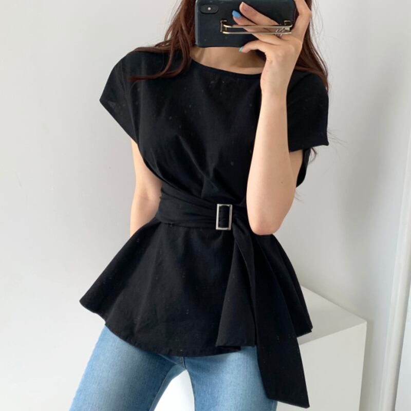 夏服スタンダードシャツ ブラウス レトロ 夏物 ウエスト muzly52228380558