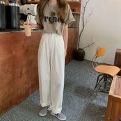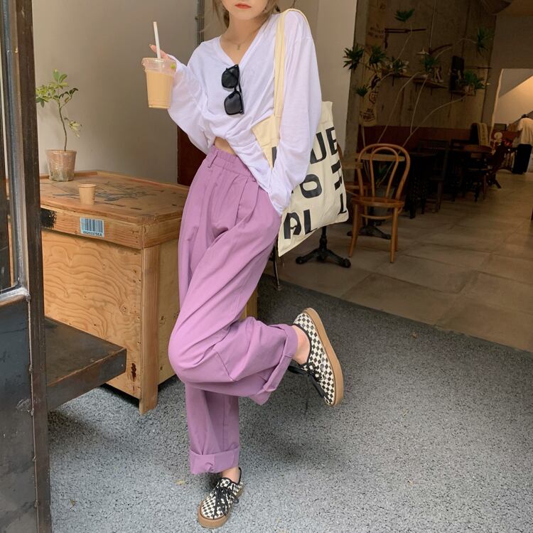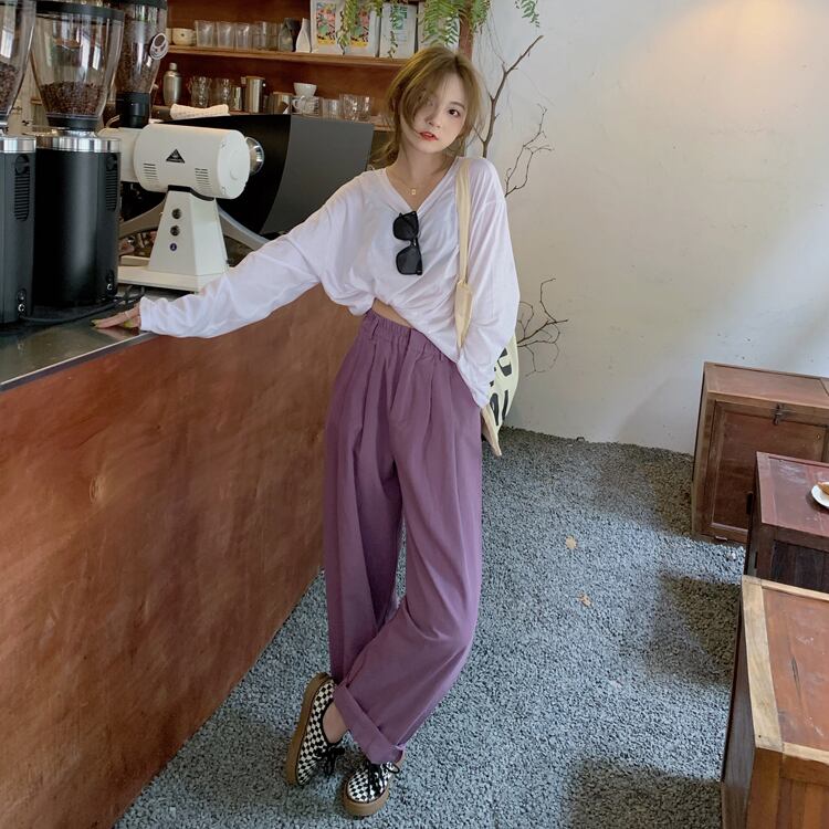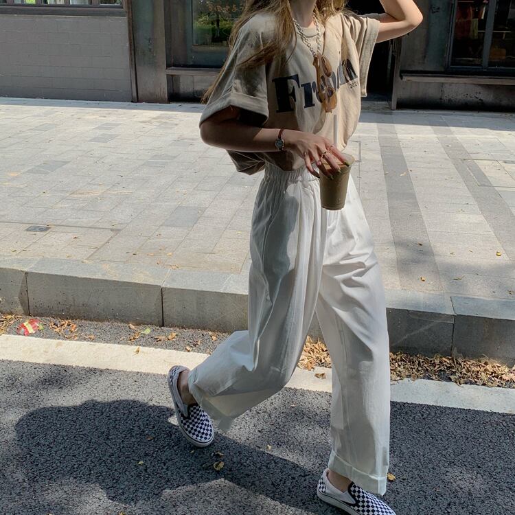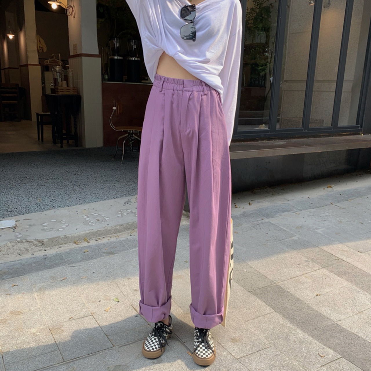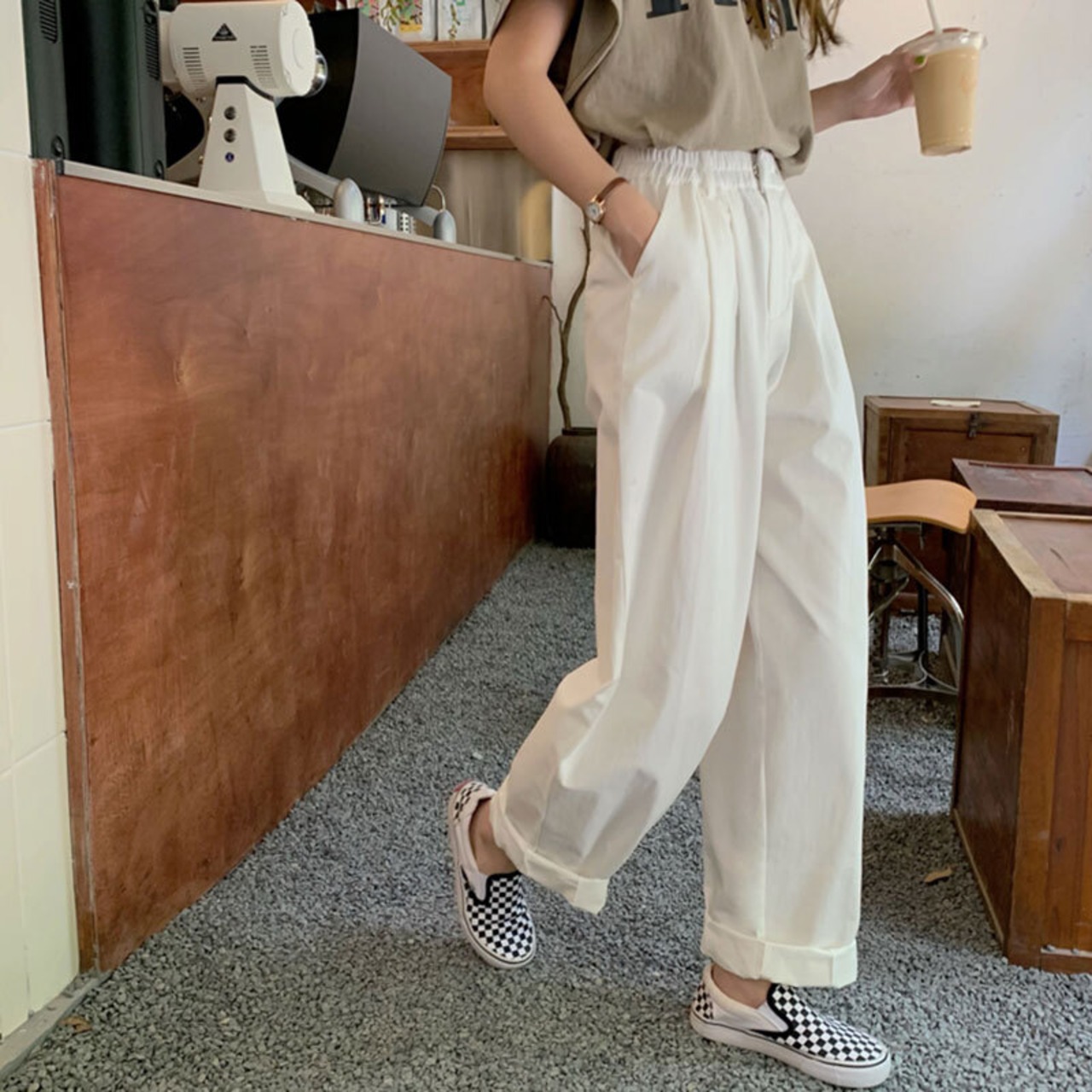 韓国ファッション夏服スタンダードストレッチウェストハイウェストルーズワイドレッグカジュアルパンツ レトロ エラスティック 伸縮 夏物 ワイドパンツ ウエスト muzly39110444122 | Neatly