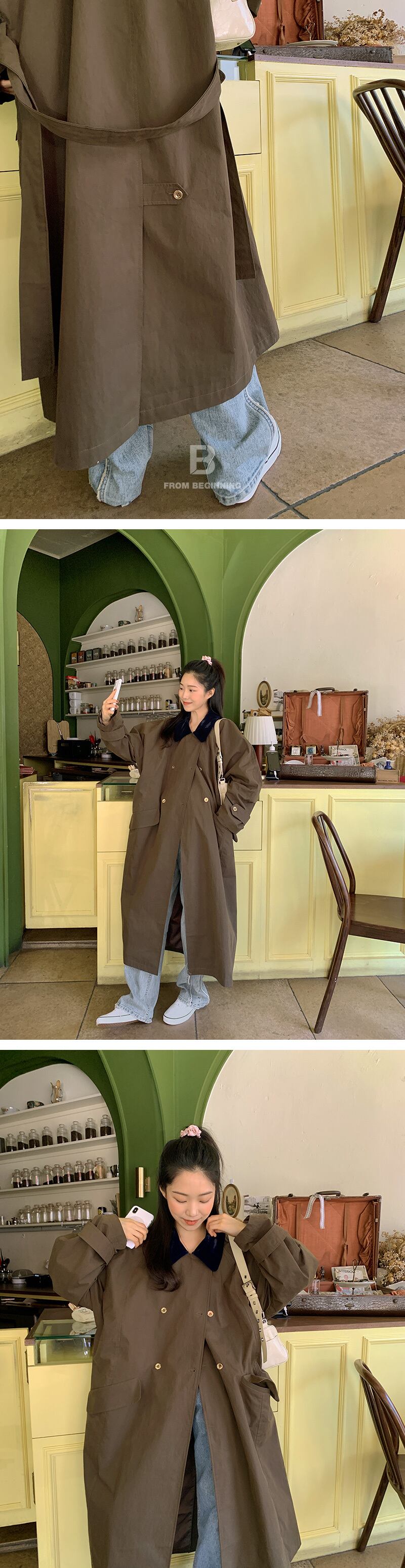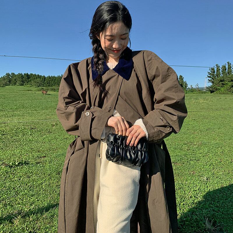 韓国ファッションウィンターダブルブレストロングコート ウェスト薄手ジャケット 冬物 ハーネス ベルト 長袖 ウエスト muzly26889216951