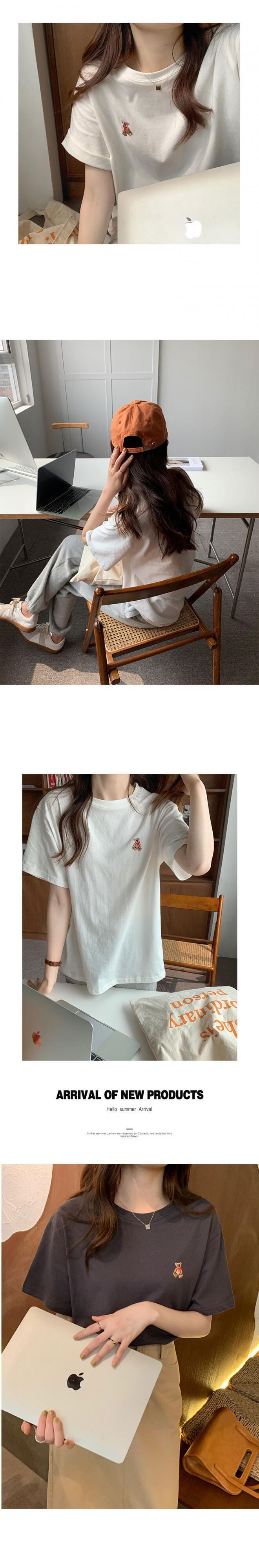 NEW夏服ラウンドネックベーシックルーズ刺繍Tシャツトップス レディース 夏物 Oネック muzly15718059074